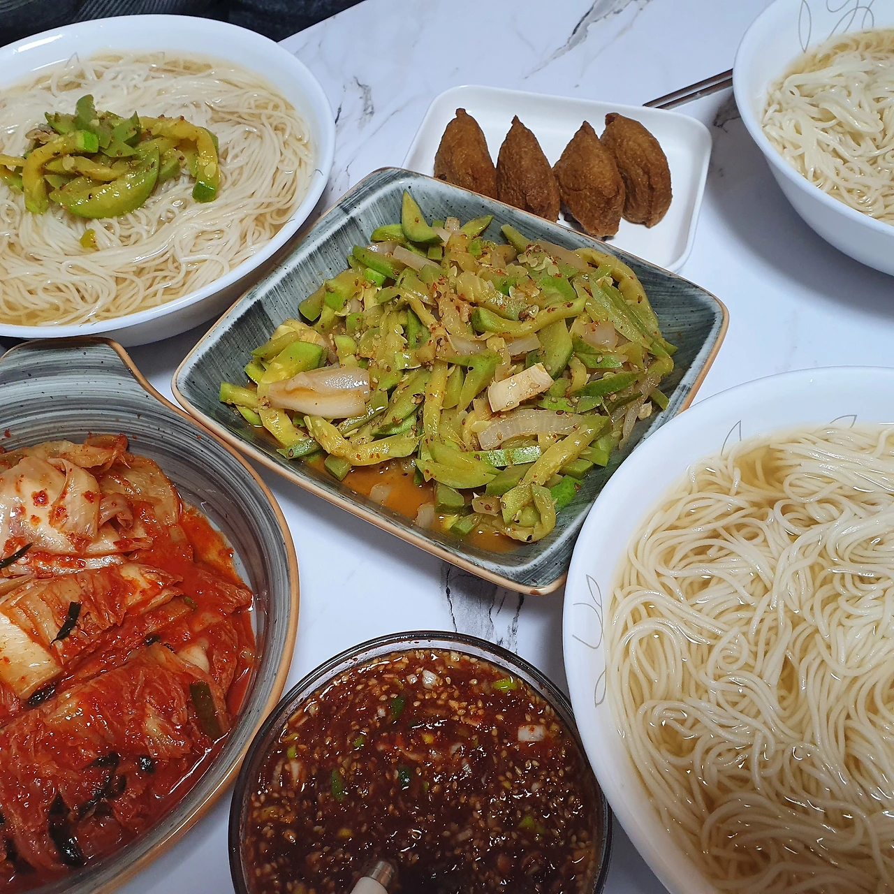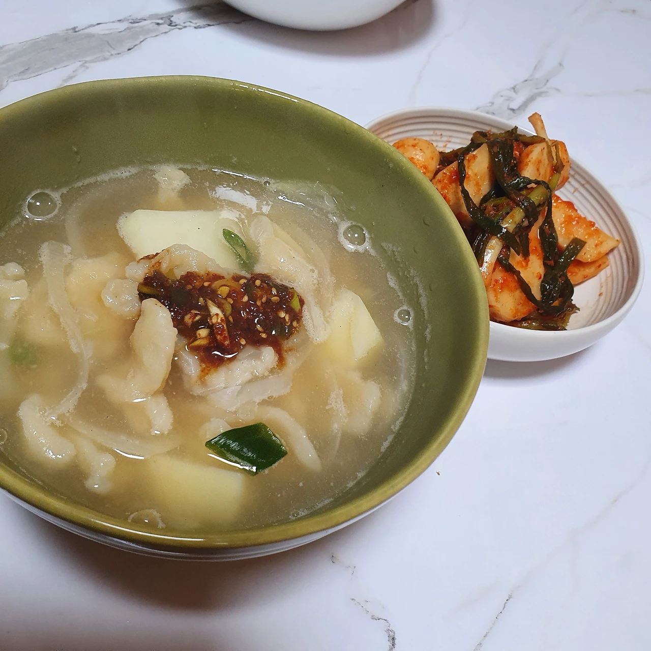 손수제비, 정구지(부추의 경상도사투리)찌짐,