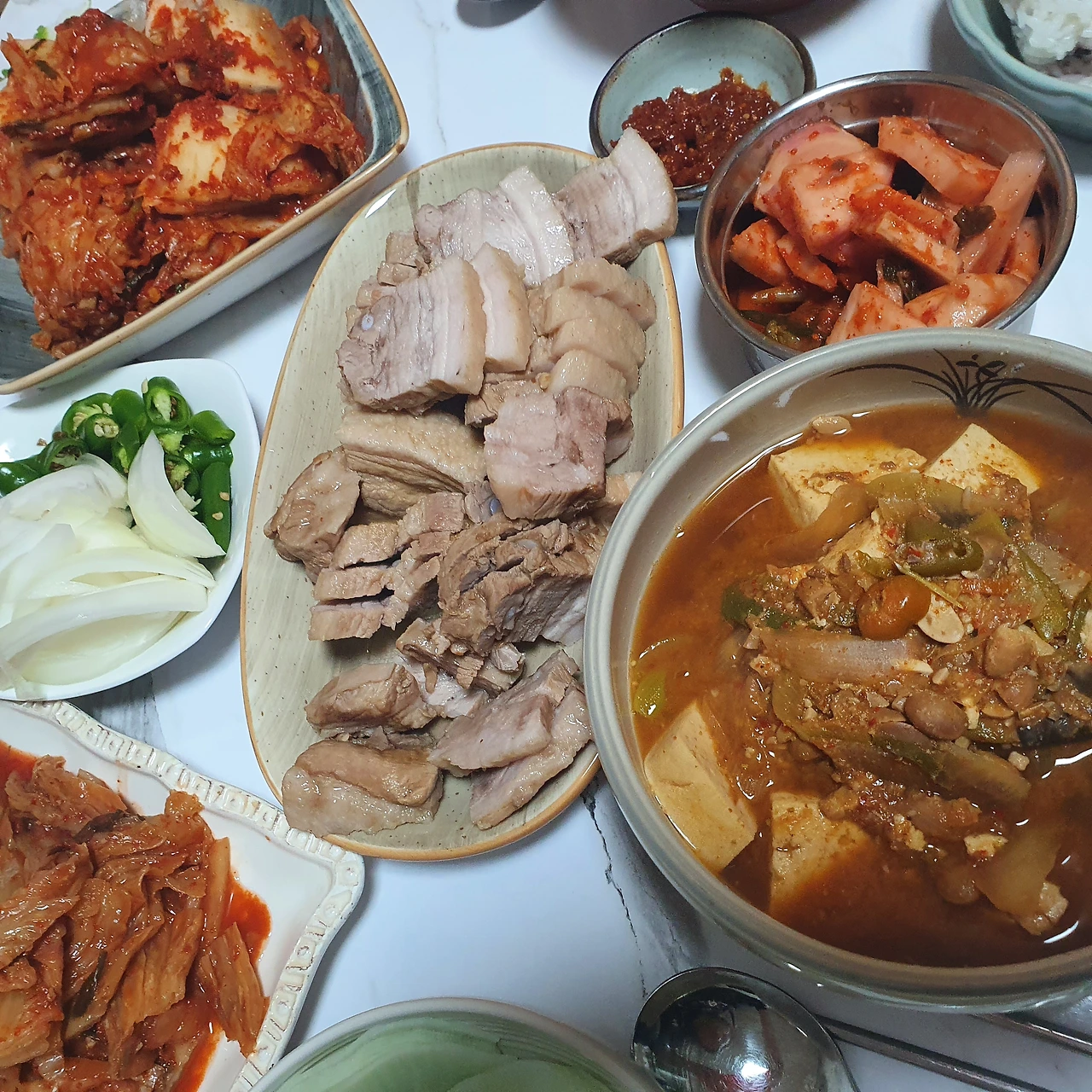 가지무침, 청양고추 가득한 강된장에 호박잎,
