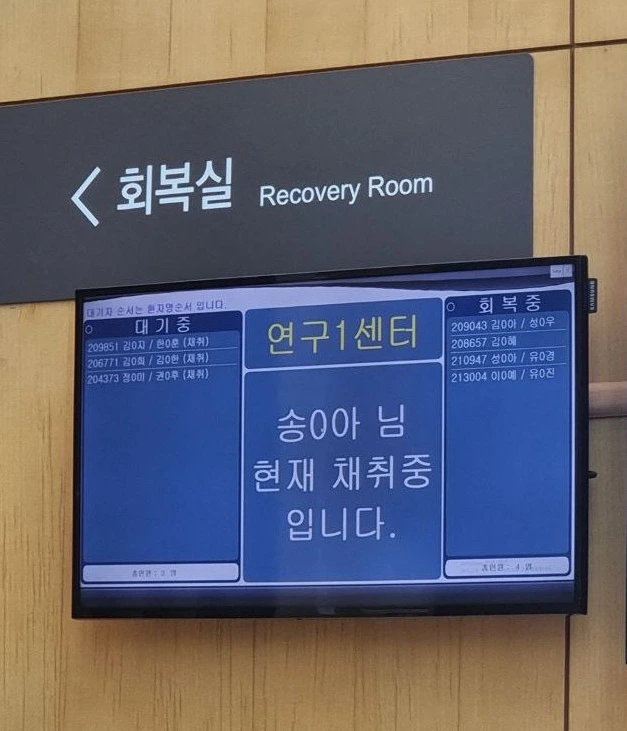 간호사 선생님이 절차를 차분히 설명해주셨고, 주변에선 먼저 들어간 분들의 마취 시간 체크가 들렸다.
