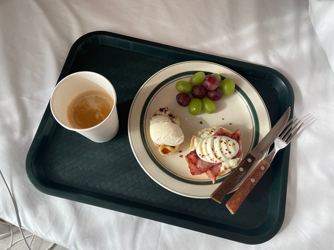 글쓰기에 꽤나 열중하던 중 아침 9시 즈음이었나? '똑똑-' 하고 현관문 두드리는 소리가 났다. 누구지? 하고 열어보니, 게스트하우스 사장님께서 손수 쟁반에 조식을 가져다주셨다. 안내사항에 아침에 게스트하우스 아래 카페로 오면 조식을 주신다는 메모를 보긴 했었다. 귀찮아서 생략하려고 했는데, 또 이렇게 손수 가져다 주실 줄은!