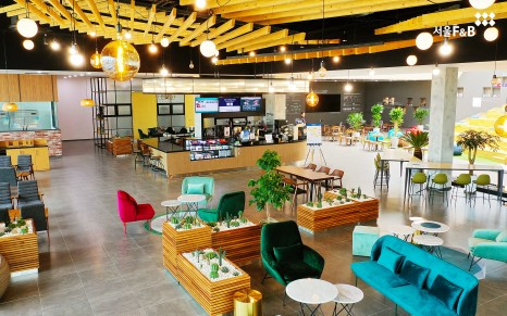 서울에프엔비는 원주기업도시 2공장에 임직원을 위한 카페테리아 시설을 새롭게 조성하였습니다. 카페용 스툴과 테이블은 물론, 홈바까지 갖춰 직원들이 자유롭게 소통하고 휴식을 취할 수 있도록 꾸며진 공간입니다. 고급커피 머신과 전문 바리스타가 음료를 제공해주며 임직원들에게 만족도가 높은 복지제도 입니다. 또한, 서울에프엔비의 카페테리아 시설은 임직원들의 유게공간 이외에도 부서 간 아이디어 회의 장소로 활용되며 편안한 분위기 속에서 소통의 장으로 작용하고 있는 곳 입니다.