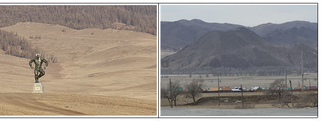 10시 57분, 지금도 포장도로를 달린다, 시속 80Km. 송아지는 풀도 없는 땅에 코를 박고 먹을 것을 찾고 있다. 흙 속의 미네랄이라도 찾고 있나? 화장실이 3칸이긴 하나 황야에 차 세우면 소변 터가 되니 마음이 급하진 않다. 참 하룻길에 몇 번의 계절을 지난다. 아지랑이 색깔의 평원이 보이더니 황사가 일어나고, 금방 눈길이 나타나더니, 이어 쭉 뻗은 고속도로를 달리고, 또 눈길과 황사 속을 통과한다. 현재 푸르공은 시속 100Km로 달리고 있다. 어제는 쉬운 체조를 배워, 잠시 차가 설 때마다 깔깔깔 웃으며, 간단한 스트레칭들을 한다. 할매들이 참 지혜롭다.