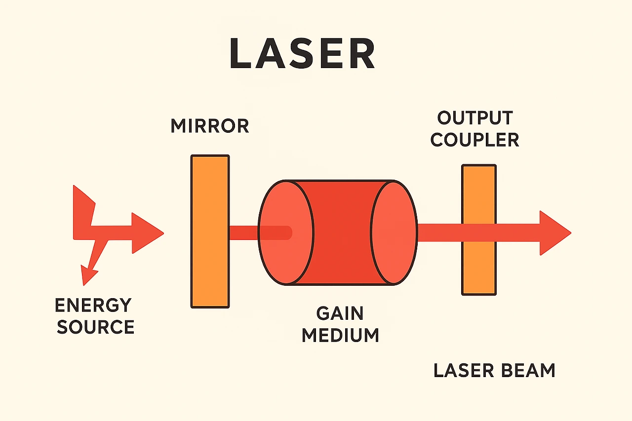 레이저(LASER)는 '유도 방출에 의한 빛의 증폭(Light Amplification by Stimulated Emission of Radiation)'의 약자로, 특정 파장을 가진 강한 빛을 만들어내는 장치다. 단일 파장의 빛을 만들어내서 직진성이 강하고 에너지 밀집도가 높아서 다양한 영역에서 사용된다. 용접, 절단, 피부치료 등은 작은 영역에 에너지를 집중시키는 레이저의 특성을 이용한 것이다.