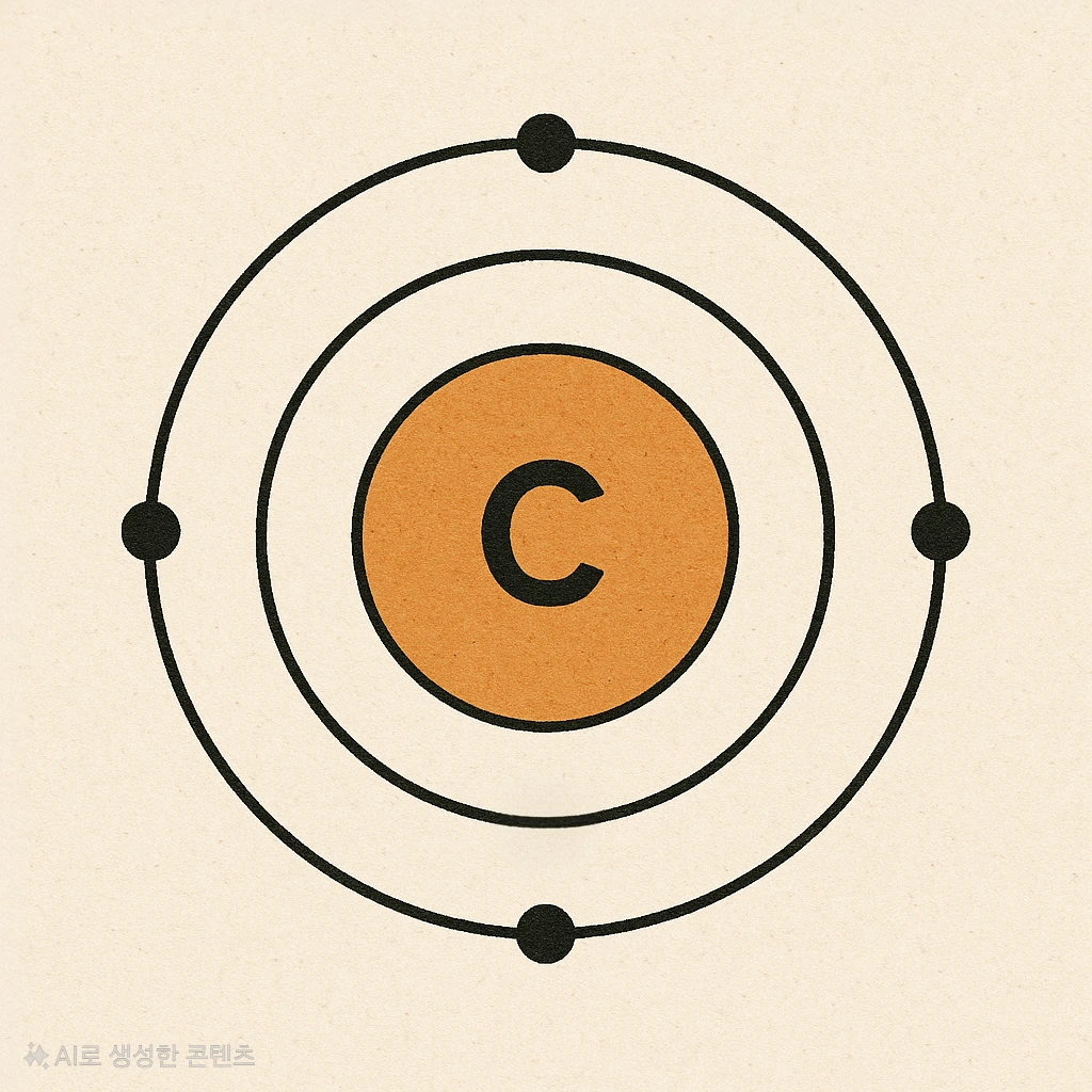 탄소는 4개의 최외각전자를 가지고 있다. 4개를 전자가 연결점이 되어 원자 간에 다양한 결합을 만들 수 있다.