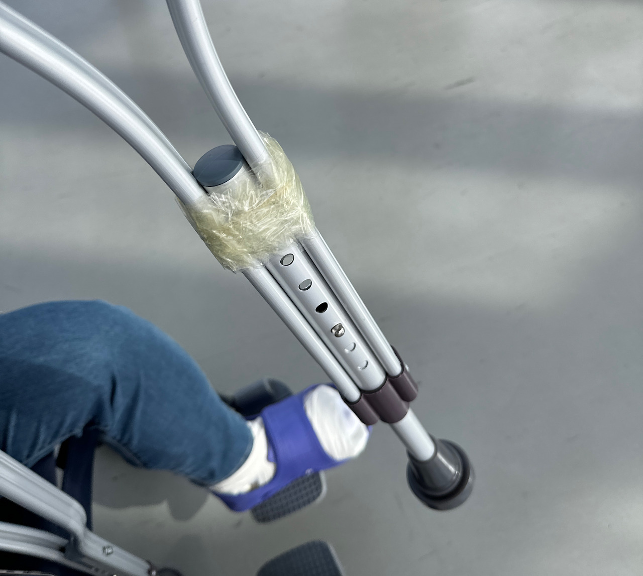 인간은 닥치면 무엇이든 하게 되어있다. 우리는 나름의 집단 지성을 발휘했다. 나는 후쿠오카에서 여행객에게 휠체어를 빌려준다는 이야기를 기억해 내고 무작정 '후쿠오카 휠체어 대여'를 검색해 가며 사이트를 찾았다. 한국어로 번역해서 급하게 필요 사항을 확인했다. 문의 내용, 이름, 이메일, 숙소 이름, 렌털 용품(휠체어)을 간략하게 남겼다. 곧바로 문의를 확인했으니, 답장을 기다려달라는 자동 답장 메일이 왔다. 일단 물어보았다지만, 당장 앞으로가 걱정되었다. 후쿠오카 공항에서 항공사 휠체어를 반납하고 나면 어쩌나. 이 목발이 과연 얼마나 이 녀석을 지탱해 줄까. 여행은 과연 가능하긴 한 걸까. 먼지 같은 걱정이 켜켜이 쌓여갈 때쯤, 엄마와 여동생이 고따위 것들 물리치려는 듯이 손을 휘휘 내저으며 나타났다. 엄마의 손에는 고무줄이, 여동생의 손에는 테이프가 들려있었다. 편의점에서 급하게 구한 직원들의 사무용품이라서 반납해야 한다고 했다. 고무줄과 테이프를 목발의 붕대 삼아 칭칭 감았다. 불뚝 튀어나온 노란 붕대였다. 남동생은 저와 같은 처지에 놓인 목발은 안은 채, 제일 먼저 비행기 앞으로 갔다.