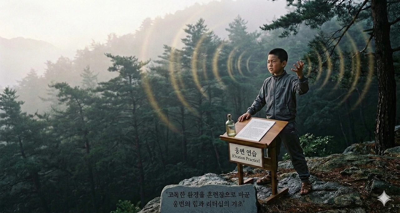 어머니의 석유 심부름을 하며 관용을 배웠던 그 흙벽돌집은, 나에게 가장 고독한 섬인 동시에 세상에서 가장 웅장한 공연장이었습니다. 전기도 들어오지 않아 등잔불을 켜야 했던 그 적막한 산꼭대기에서, 초등학교 3학년 소년의 가슴속에는 '웅변'이라는 뜨거운 불씨가 지펴졌습니다.