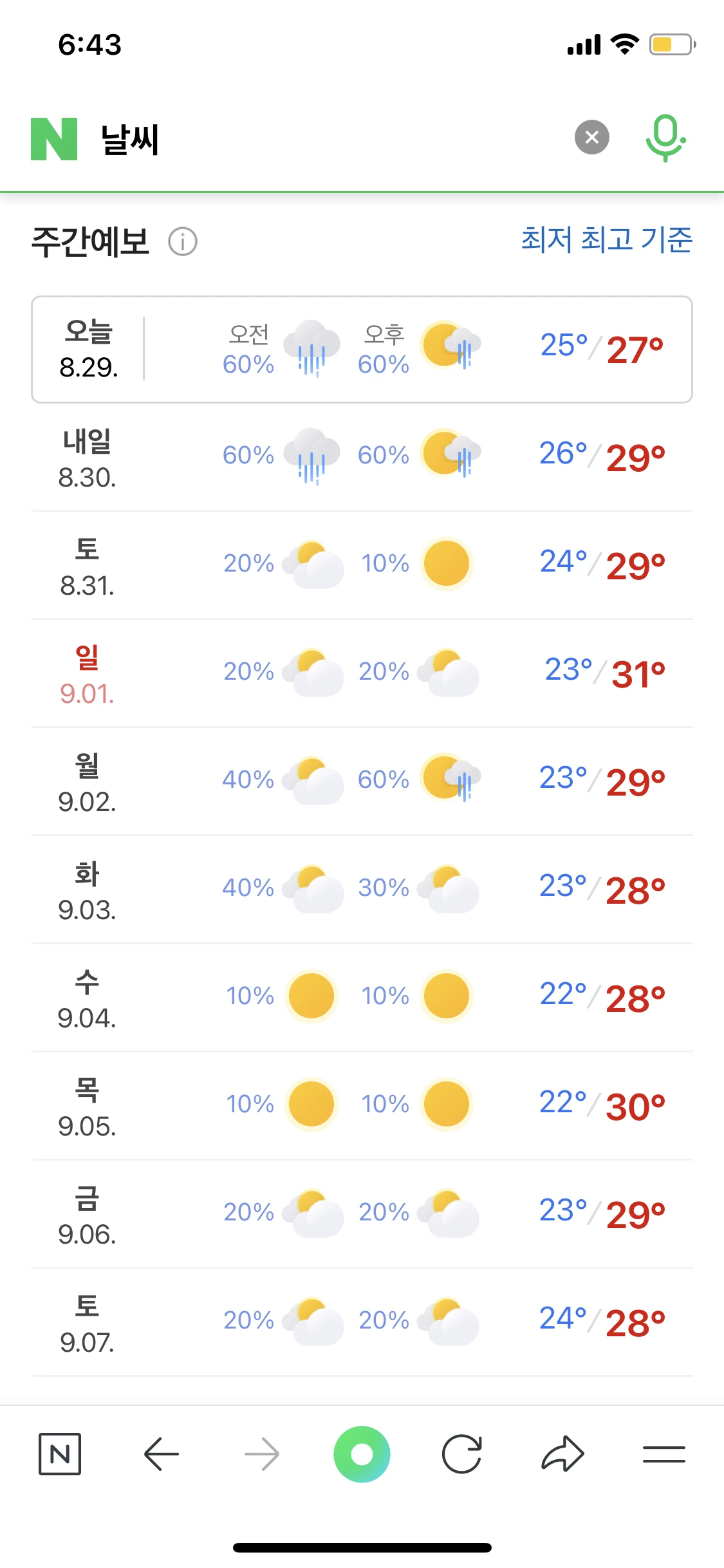 오늘의 날씨는 매우 흐리고 비가 왔다 그쳤다를