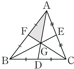 삼각형 ABC의 세 중선에 의하여 삼각형의 넓이가 6 등분된다. 즉, 삼각형 ABC의 무게중심을 G라 할 때, AGF=BGF=BGD=CGD=CGE=AGE이다.