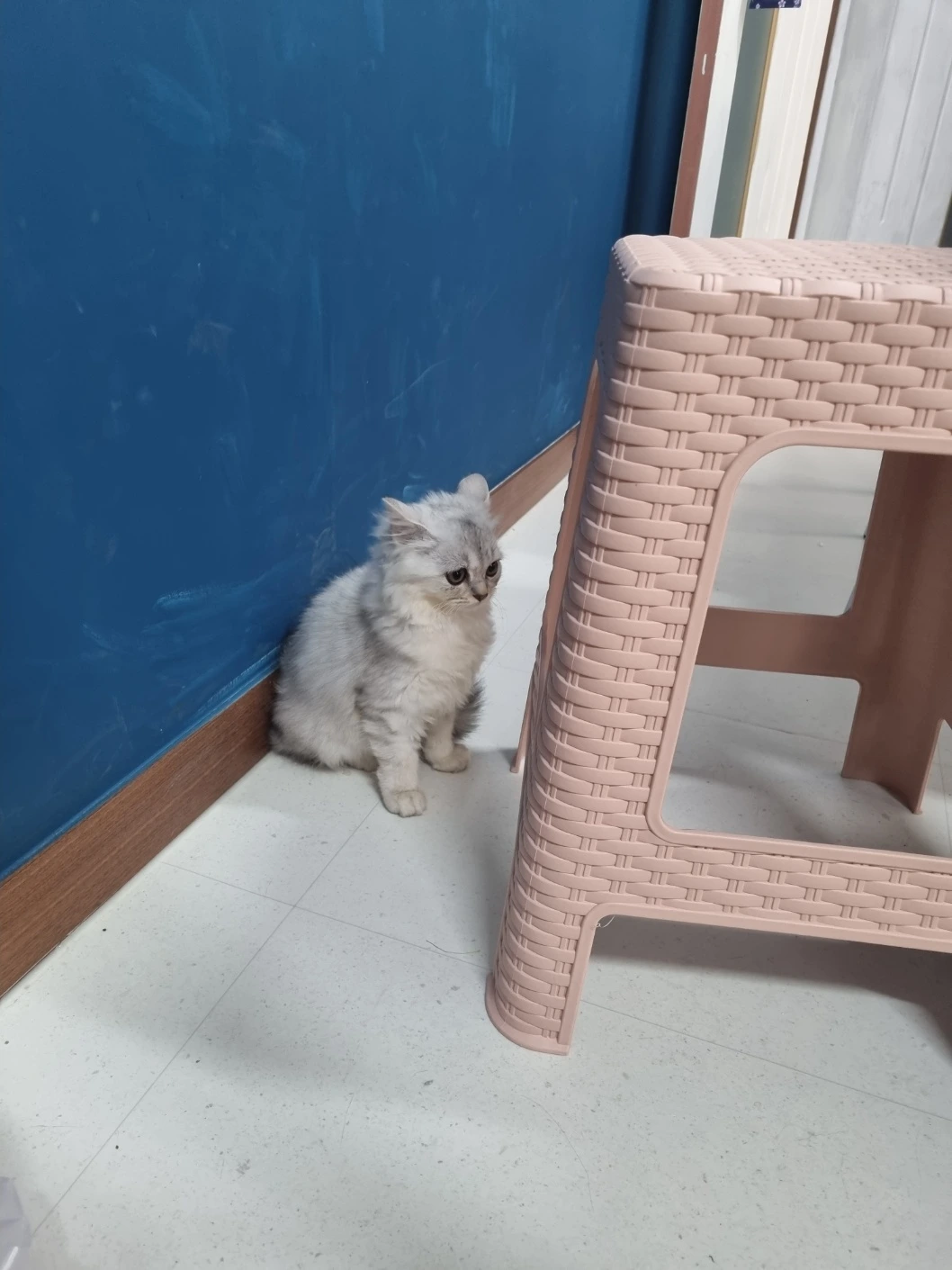할퀴면 나한테 야단맞으니 구석으로 몰아버린다.