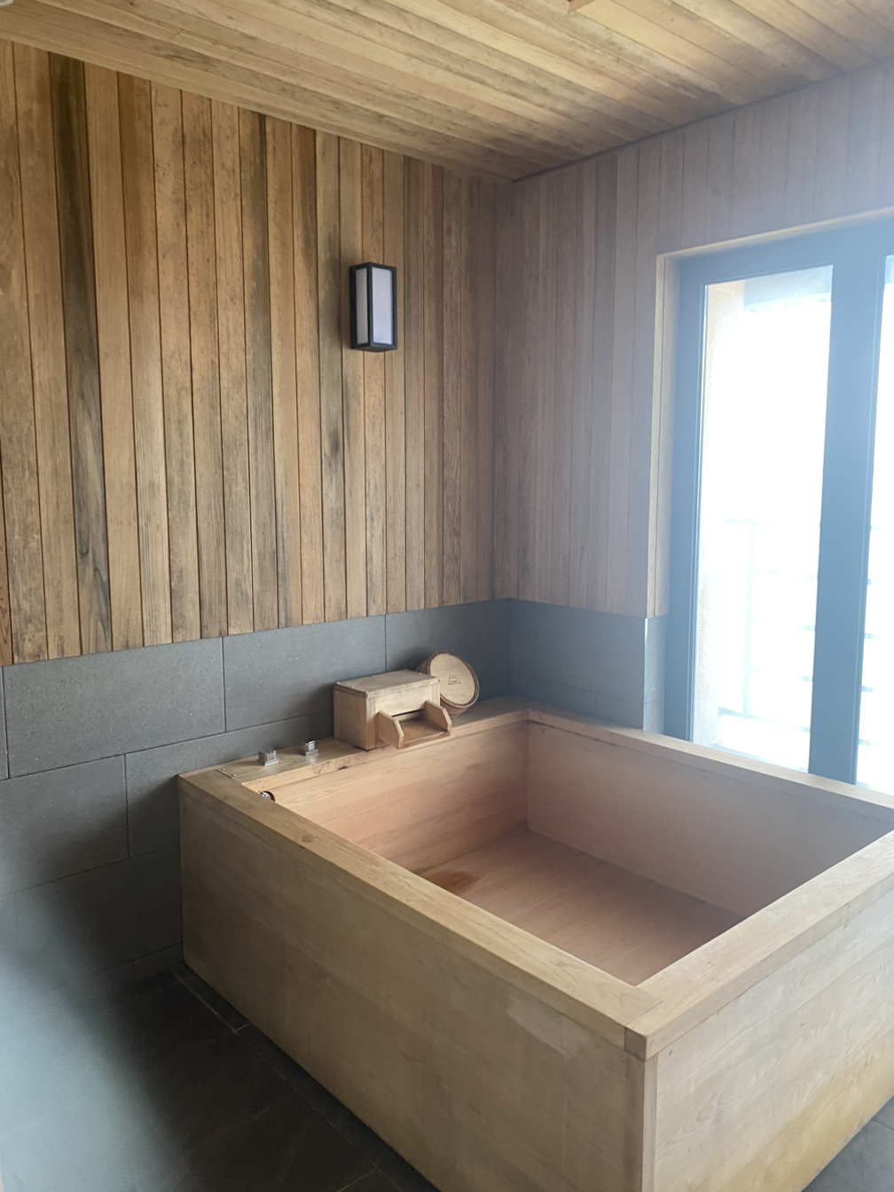 석식을 먹고 드디어 고대하던 히노끼욕조에