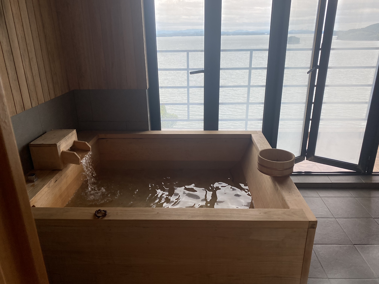 그렇게 히노끼탕에서 오전에 남해바다를 보면서