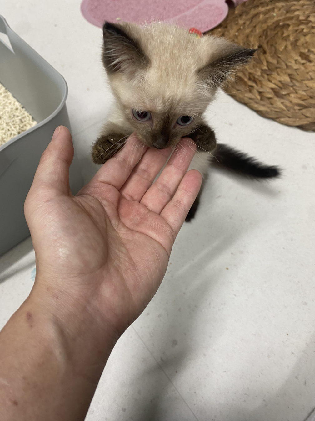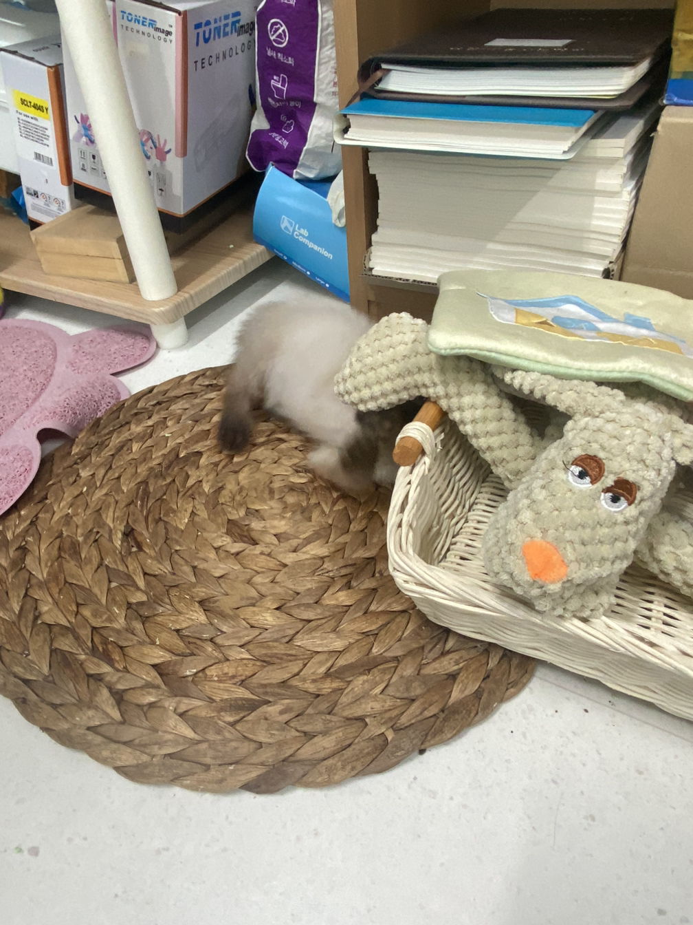 오자마자 개냥이다.