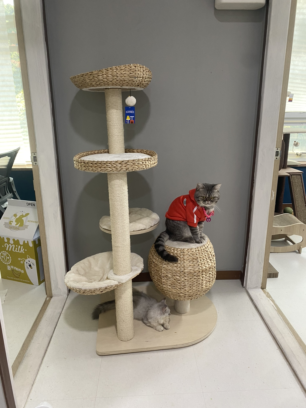 캣타워 2개 밥그릇 4개 물그릇 4개 스크래쳐만