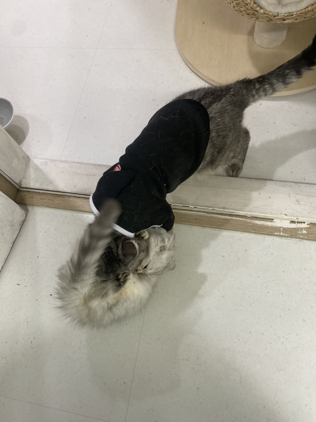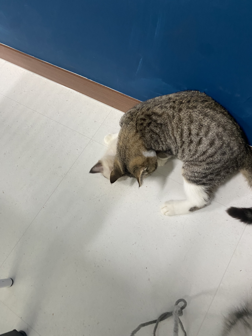 학원에 돌아오자마자 기특해서 츄르를 준다.