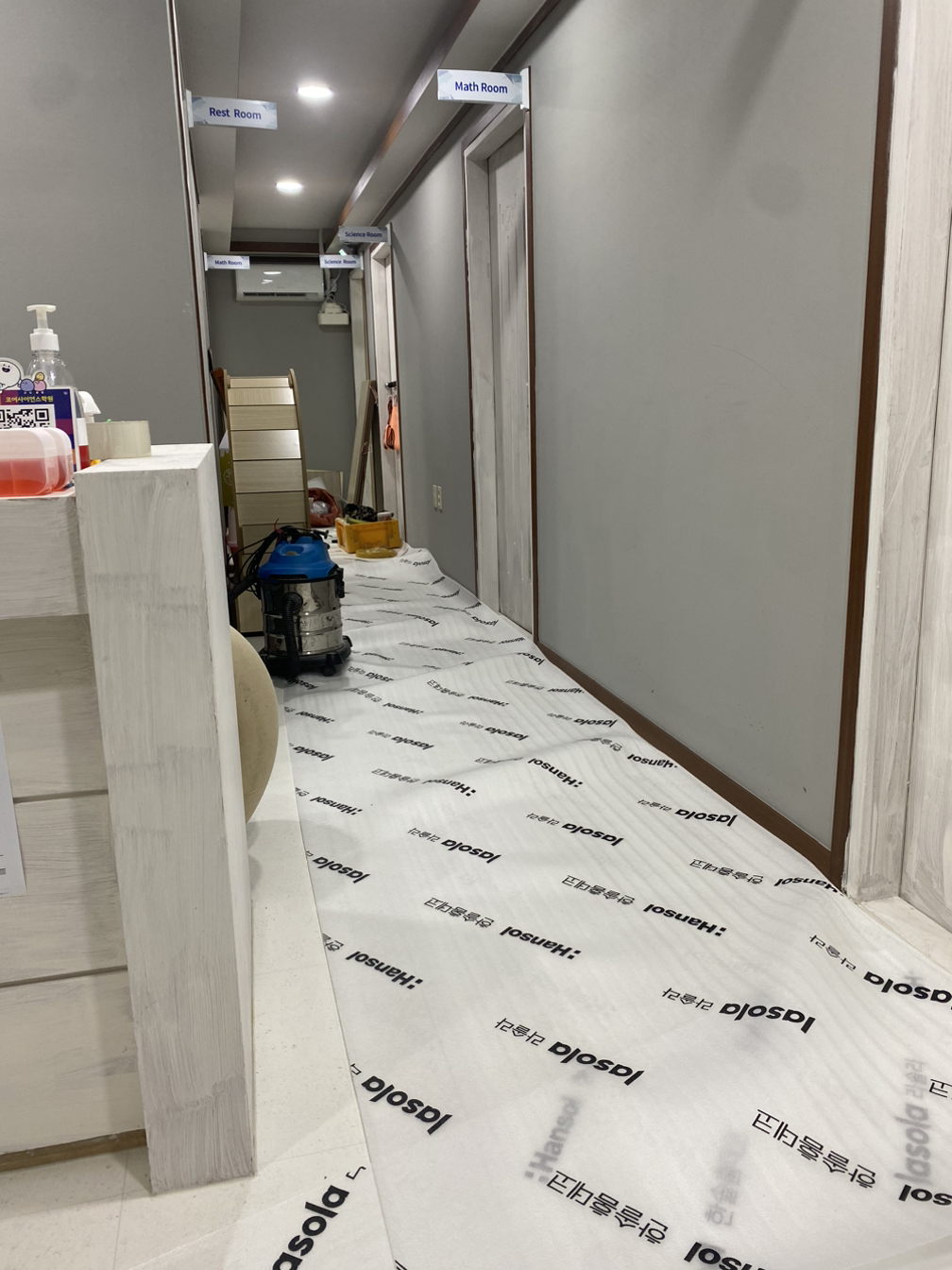 오늘은 드디어 학원내에 온돌마루 시공이 있는 날이다. 수업을 다른날로 미루고 오전 7시에 기상해서