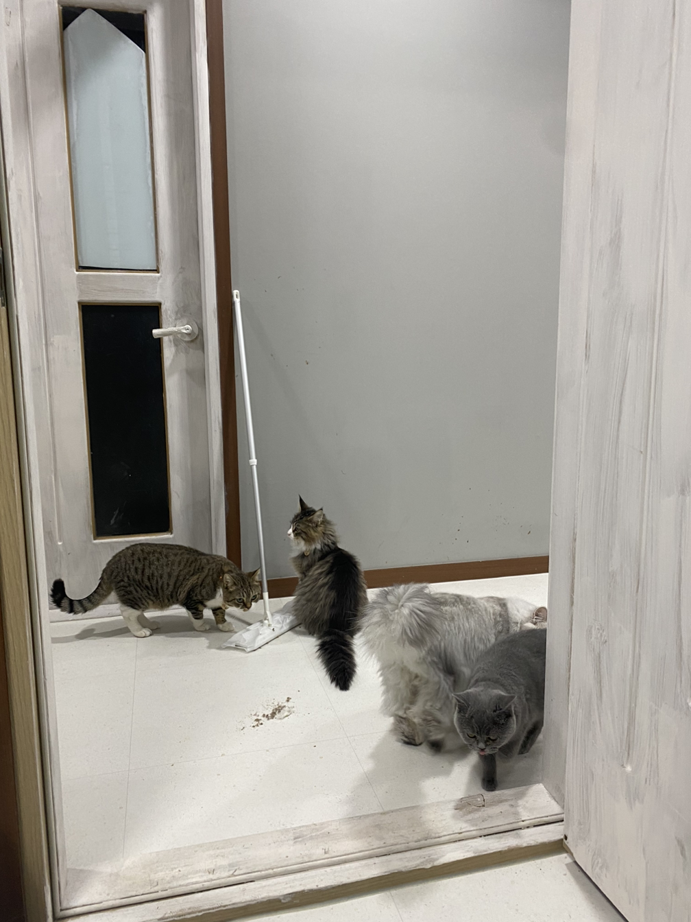 밀대포로 먼지 모아둔 것을 망고와 쿠니가