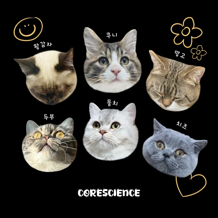 우리 냥이들 6마리 굿쯔 티셔츠를 제작하기로 했다.