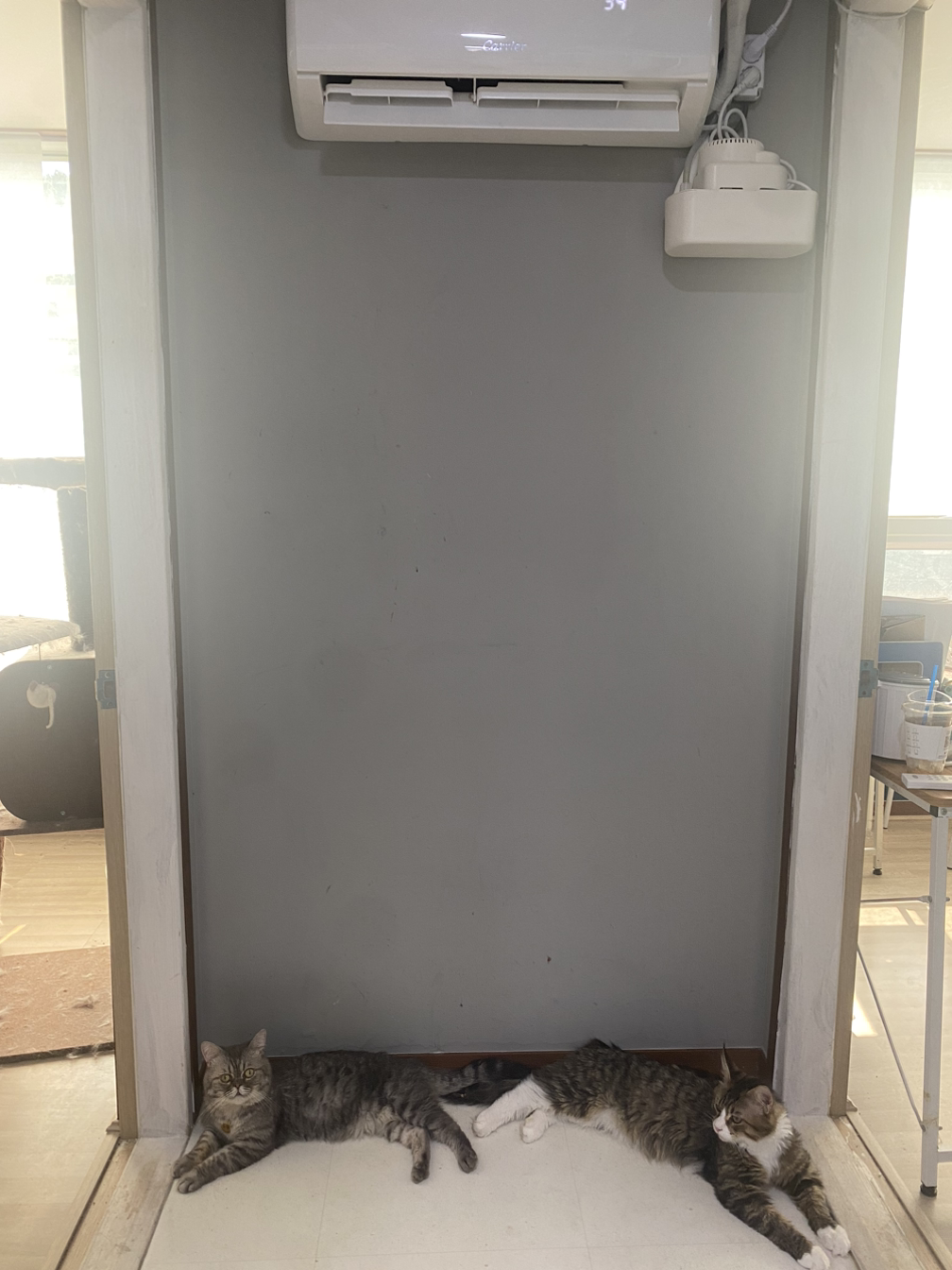 에어컨을 틀고 사료먹고 나니 다들