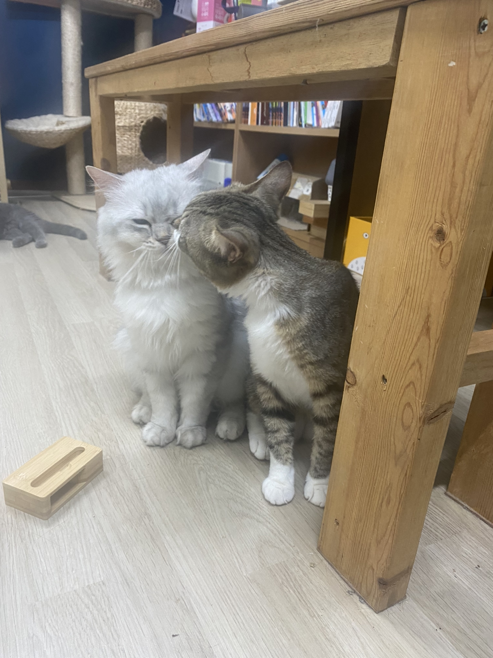 왕감자 츄르를 먹이면 옆에 붙어서 기어코 다른 고양이들 간식을 스틸한다.