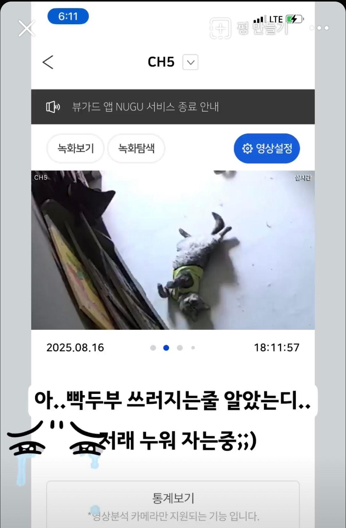 수시로 cctv를 확인해 고양이 상태를 살핀다.