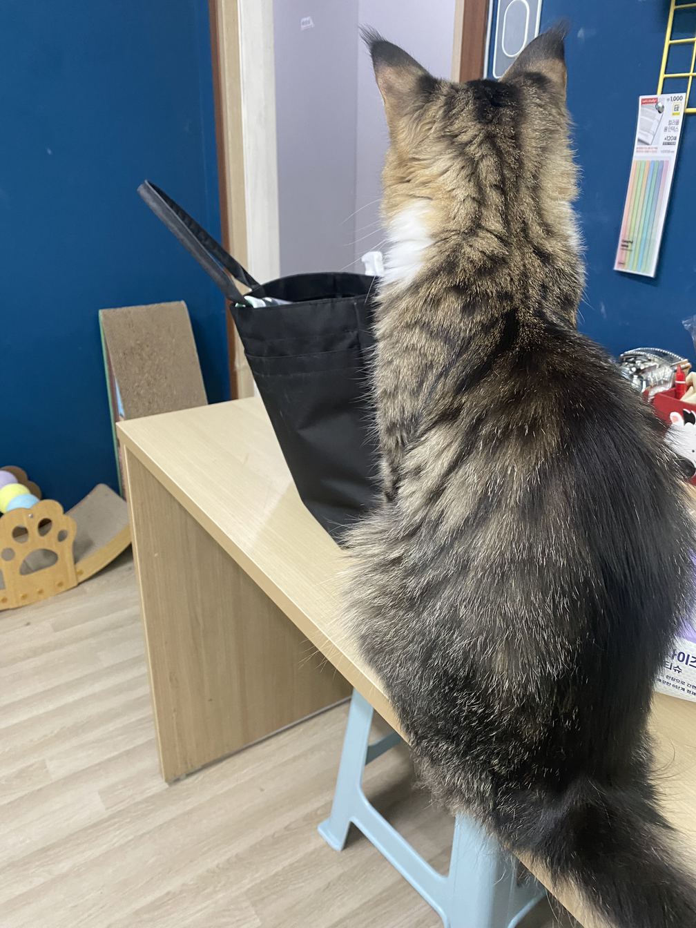 세계에서 제일 큰 고양이 답게 먹성도 호기심도 엄청 나다.