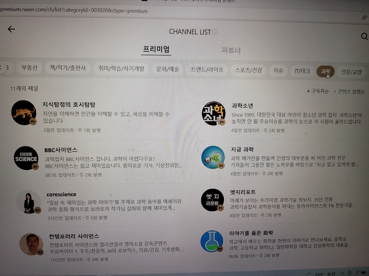 오늘 네이버 프리미엄 과학 콘텐츠에서