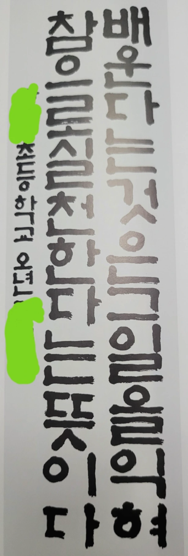 첫째는 어렸을 때부터 여러 분야에서 재능을 보여왔다. 5학년 때 담임선생님의 추천으로 서예부에 들어갔는데 서예에 재능을 보였다. 각종 대회를 다 휩쓸었다. 지금 생각해보면 차분한 성격이 서예에 적합했던 아이였던 것 같다. 한 달간 배우고 나간 대회에서 입선을 한 작품이다.
