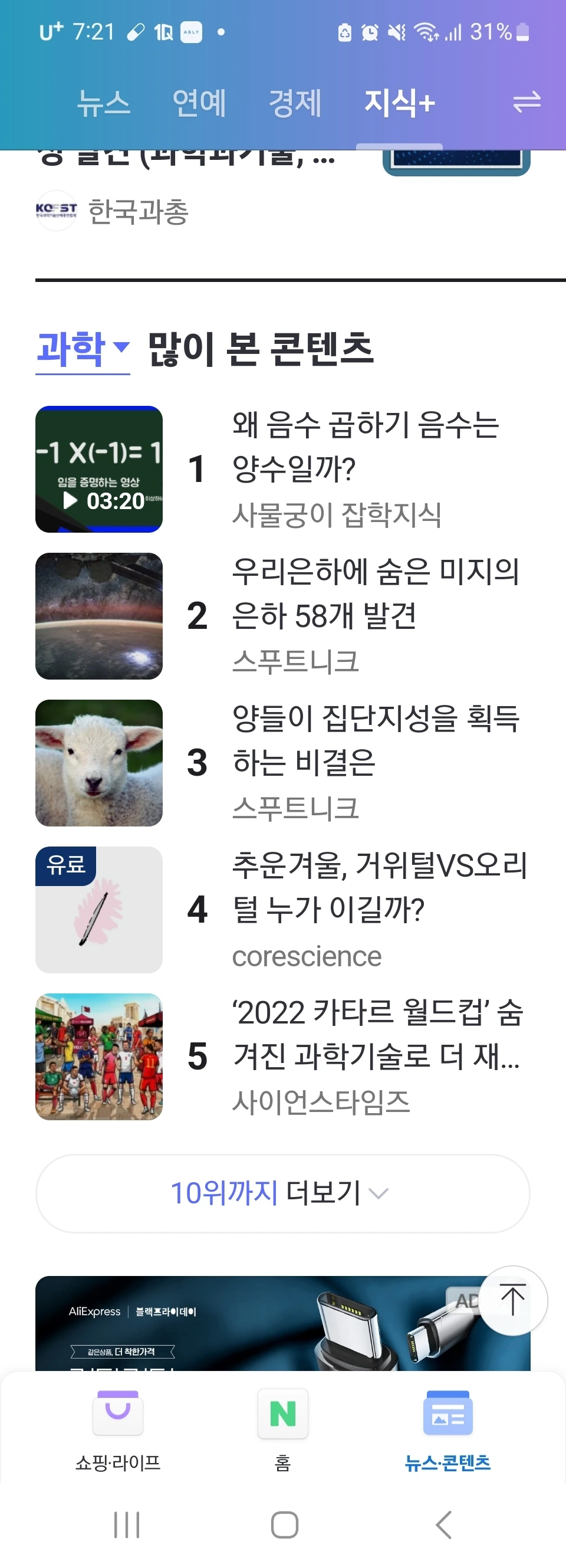과학 많이본 콘텐츠에