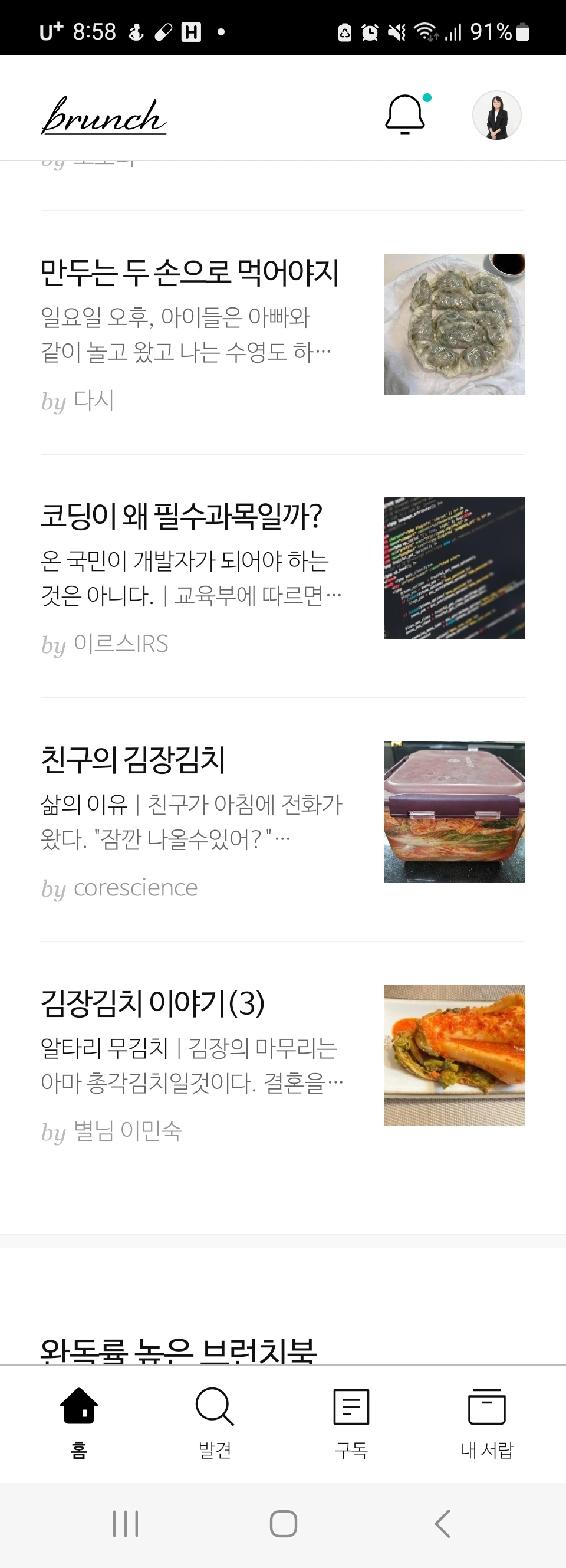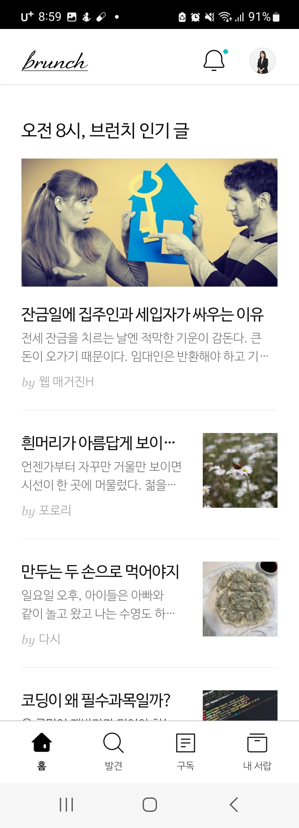달라진 브런치앱에 내글이 오전8시 인기있는글에 떠있다.