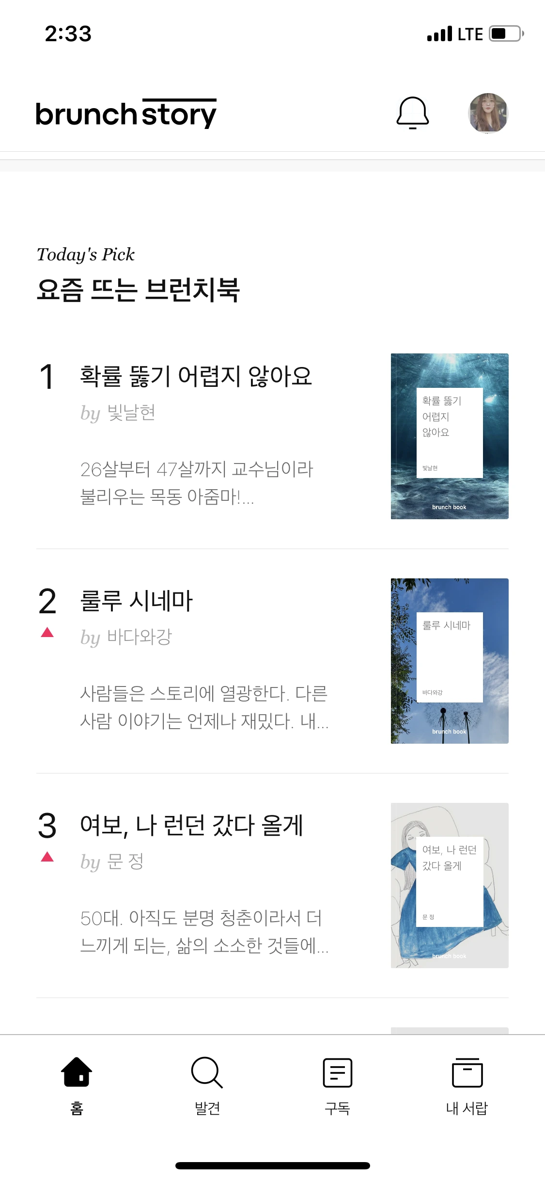 이런 나의 의도를 아셨는지 “요즘 뜨는 브런치북”에도 순위가 올라가 있다.