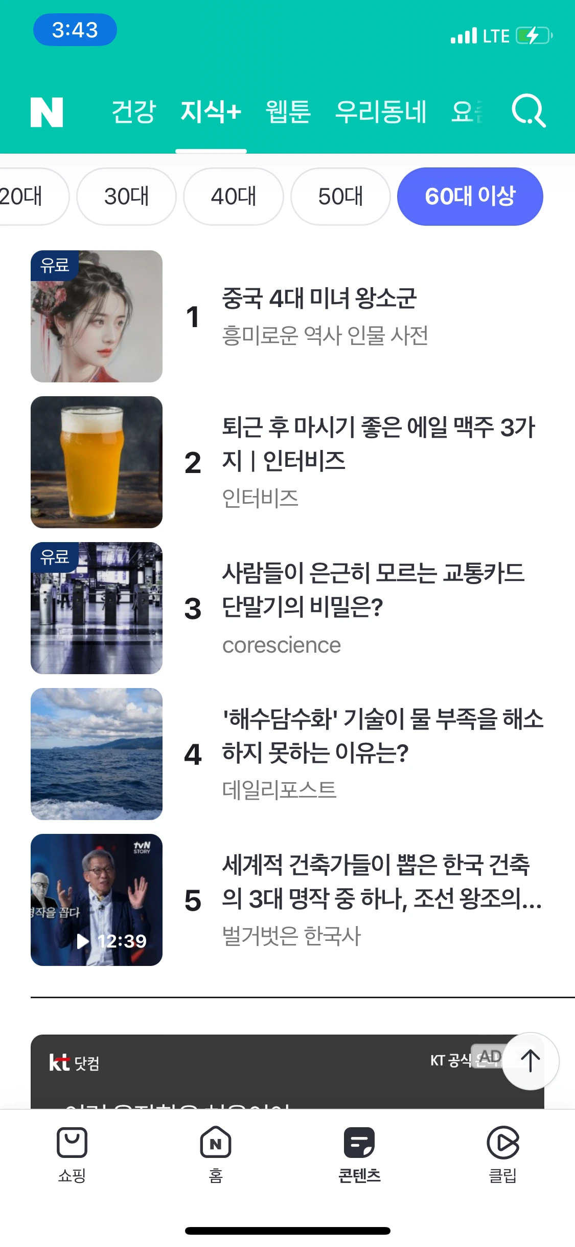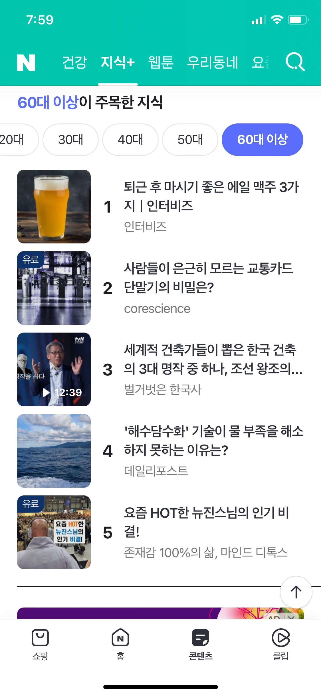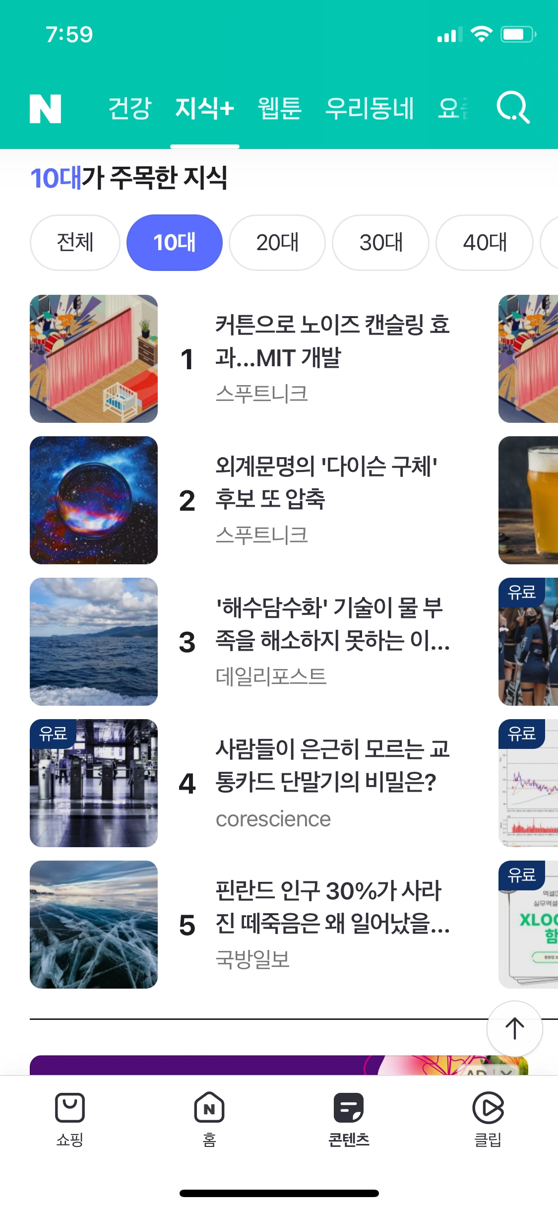 최근 일주일내에 네이버프리미엄 과학콘텐츠글