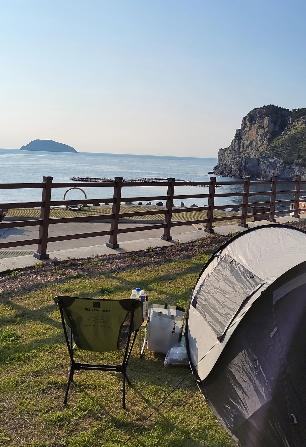 차를 한잔하고 오후 일행분들은 다음날 출근을 위해 고속선으로 제주도로 떠났고 나는 야영 준비를 하러 추자도의 유일한 공식 야영장인 나바론 야영장으로 차를 몰고 가 야영을 준비하고