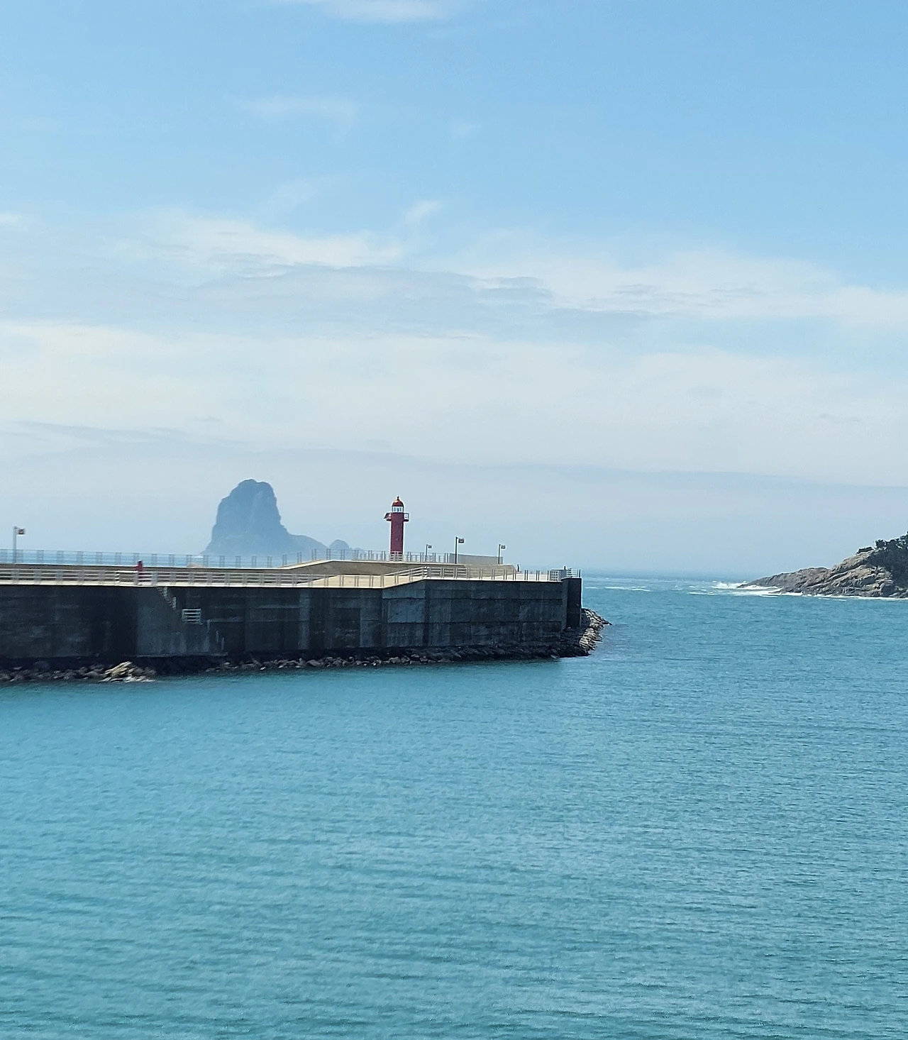 작은 방파제가 있으나 너울이 치면 바로 들이치는 위험한 곳이다.(주차하고 장비를 챙기고 있는대 어떤 분이 버스로 하차해 바로 그곳에서 낚싯대 한대로 낚시를 시작해 피식 웃음이 나왔다.. 나도 그분도 다 추자도 초짜.. 바로 앞 섬이 그 유명한 섬생이 포인트로 배 타고 1분 거리를 배를 안 타니..)