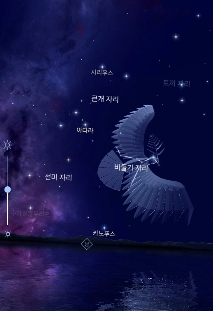 카노푸스 별은 수평선 위로 살짝 두시간 정도만 뜬다.