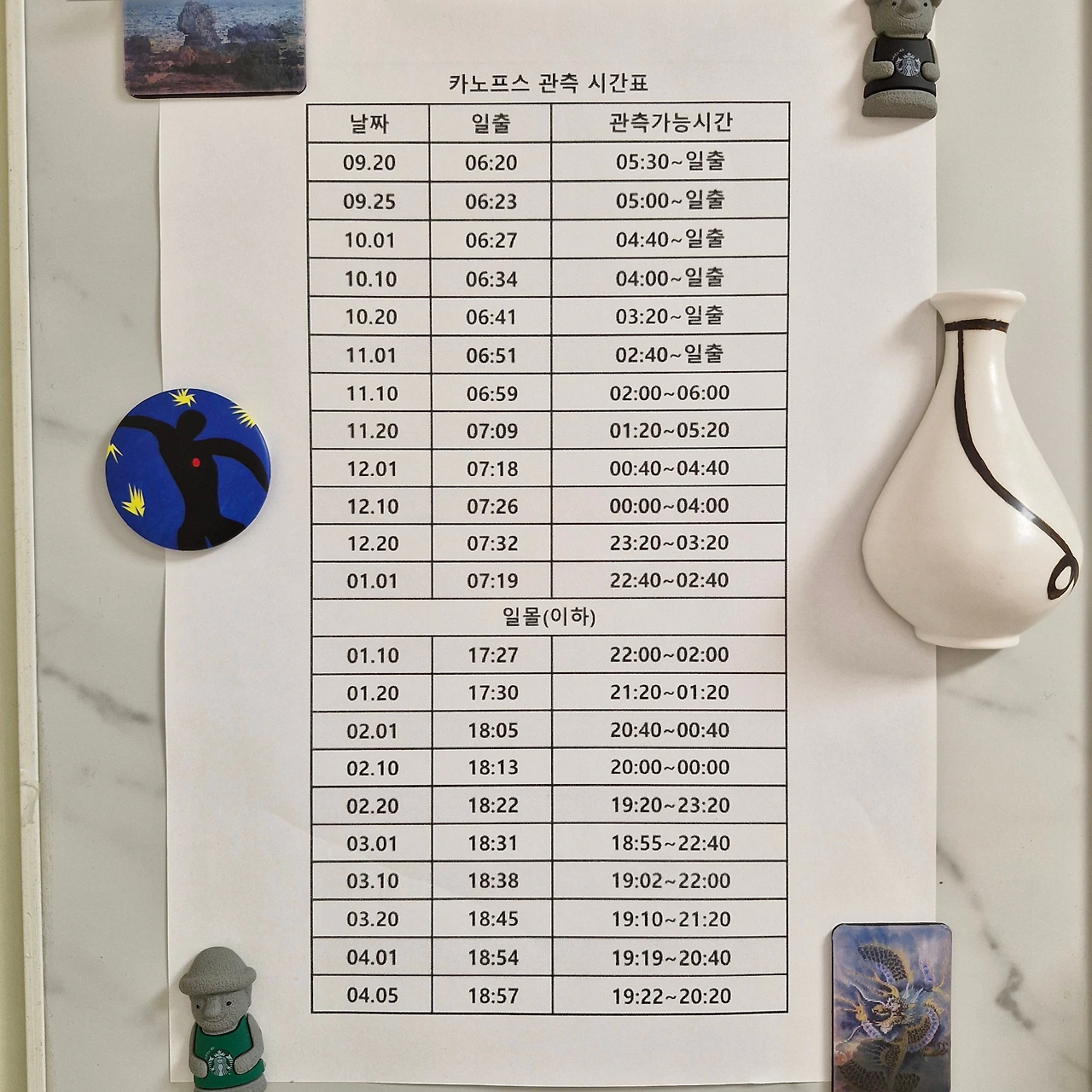카노푸스는 바다 물때 기준으로 물이 가장 많이 빠질때 관측된다.