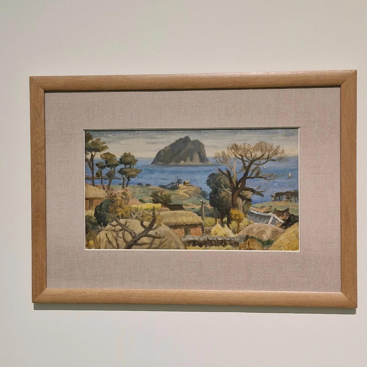 이중섭< 섶섬이 보이는 풍경>1951년 유채화.이중섭의 생활중 피난와서 잠깐 산 제주도 서귀포에서 가족과 함께산 삶이 그의 생의 가장 행복한 시간이 됬다.