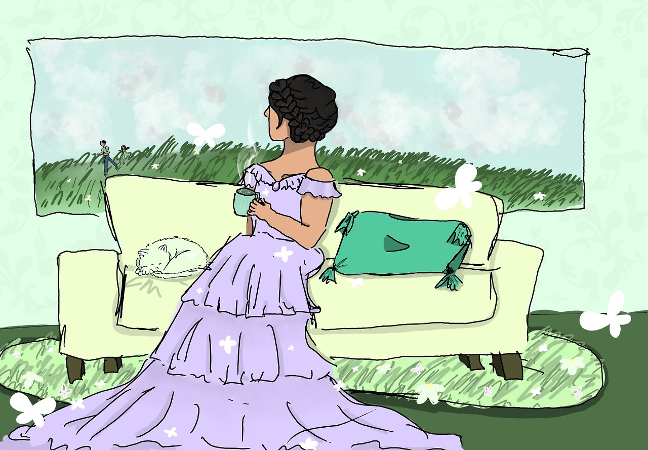 아이패드를 딸에게 선물했을 때, 딸이 처음으로 그려 준 내 그림. 이 그림을 내 첫 책에 꼭 담고 싶었다. 츄리닝을 입고 사자 머리를 하고 글 쓰고 있는 게 현실이지만, 나는 상상 속에서 우아하고 아름다운 여인. 예쁘게 그려 줘서 고마워, 케일라!