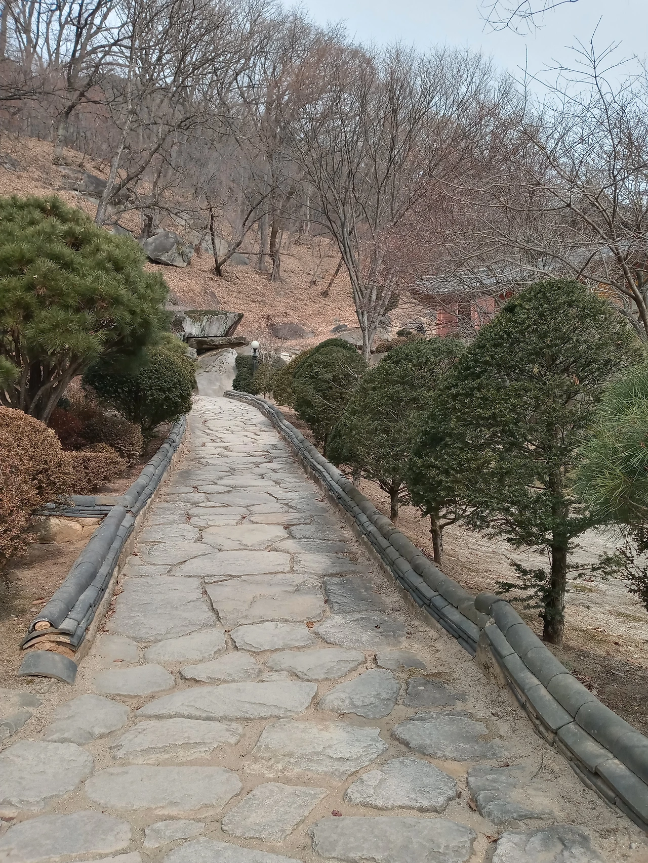 야트막한 돌담 위에 기왓장을 올려놓은 길의 끝에 커다란 부석(浮石)이 있다. 아이는 부석으로 이어진 돌담길이 용의 꼬리 같다고 하였다. 그러고 보니 돌담 위의 기왓장이 꼭 용의 비늘처럼 보였다. (의상대사를 흠모 하던 여인이 용이 되어 의상대사가 부석사를 지을 수 있도록 거석을 들어 올려 주었다.) 우리는 신비와 전설의 부석사를 내려와 현실과 이상을 이어 줄 배움의 공간, 소수서원으로 향했다.