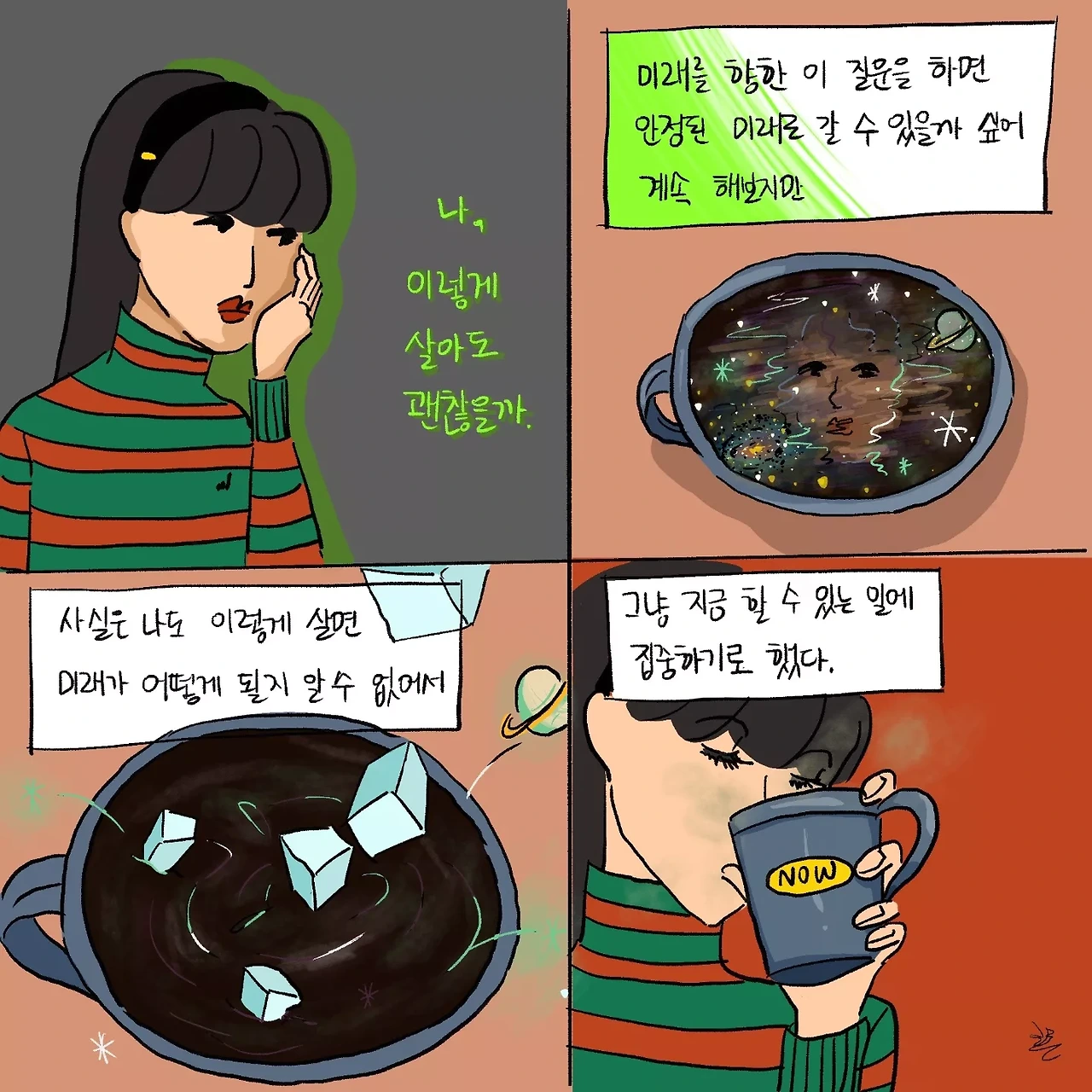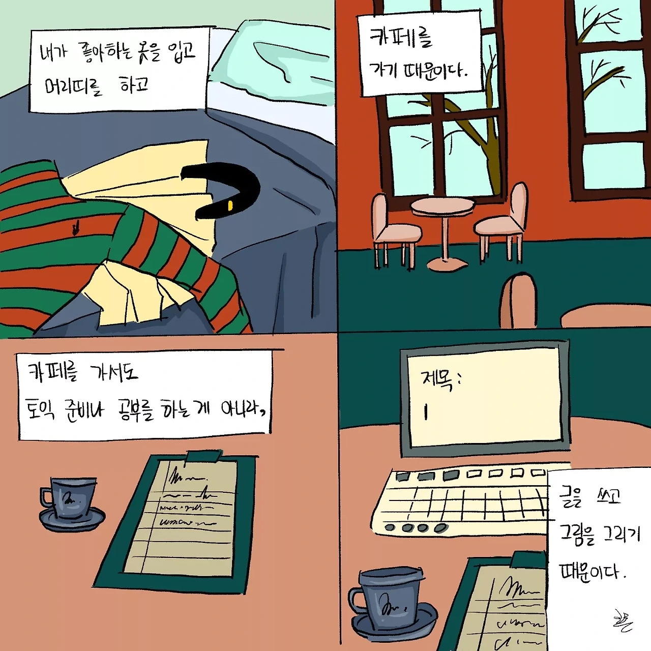 하지만 이때 필요한 건 어쩌라고! 의 마인드이다. 이제 첫걸음이니까 허점 투성이인 게 당연하지! 나한테는 쓰레기 같은 작품이라도 필요했다. 그것들이 결국 기록이 되어 나만의 미래를 펼칠 때니까.