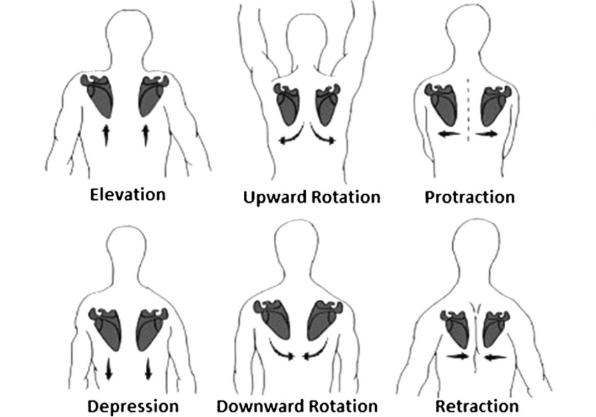 날개뼈는 크게 6가지의 움직임이 있다.