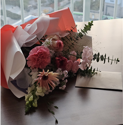 매번 기념일을 잘 챙기고 자상한 남편이었기에 아주 놀라진 않았지만 그래도 우울한 마음이 좀 가셨다. 처음엔 편지가 있는 줄 몰랐다가 꽃다발을 꽃병에 옮기면서 툭 떨어진 편지를 주워들어 읽었을 땐 이 모든 슬픔과 고민이 한방에 해결되는 기분이었다.