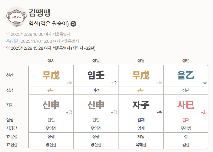 AI가 아직은 부족한 점이 많으니 오류가 있는지 꼭 확인하고 정말 진심으로 보고 싶다면 명리학자를 찾아가고 이건 심심풀이로 여겨도 좋다.