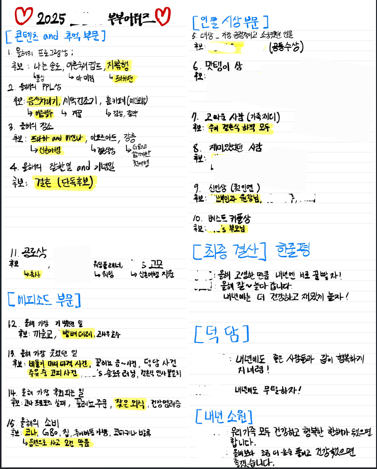 우리만의 시상식과 연초 계획