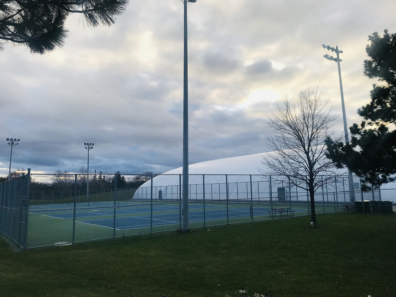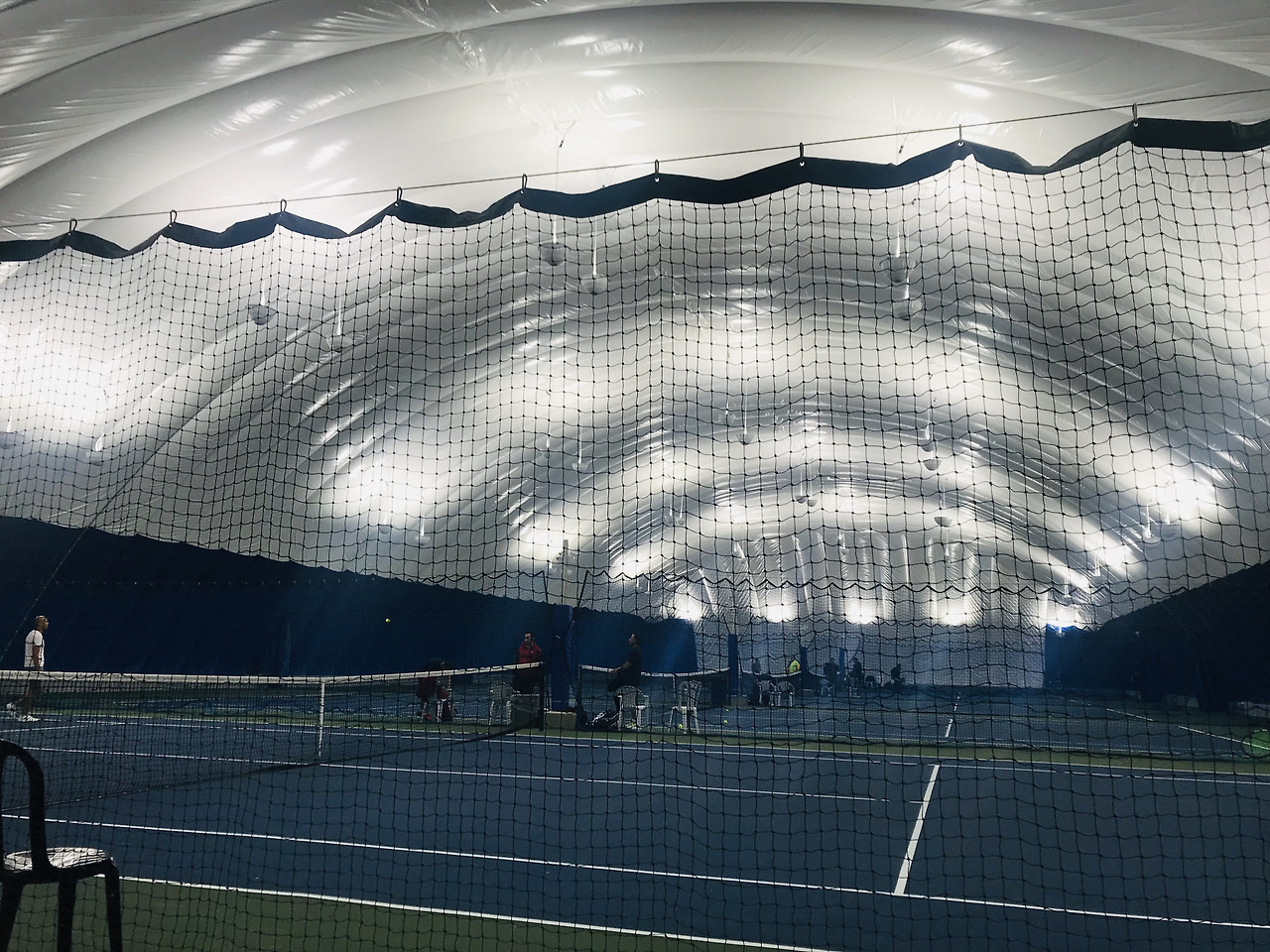 코트장은 풍선지붕으로 되어 있었는데, 신기한 게 공이 벽에 부딪히면 힘없이 주르륵 떨어져서는 벽 쪽의 낮은 선반에 딱 안착한다. 튕겨오고, 굴러오고 그런 게 없어서 정말 편했다. 가격은 한 시간에 $26. 실외 코트도 있었지만 네트가 걸려있지 않았고, 실내 코트에는 4개의 코트가 있었다. 샤워실도 잘 되어 있고, 난방도 잘 되어서 다들 반팔을 입고 있었다. 옆 코트와 간격은 그리 넓지 않았고, 볼이 넘어가지 않도록 그물망이 다 쳐져 있었다.