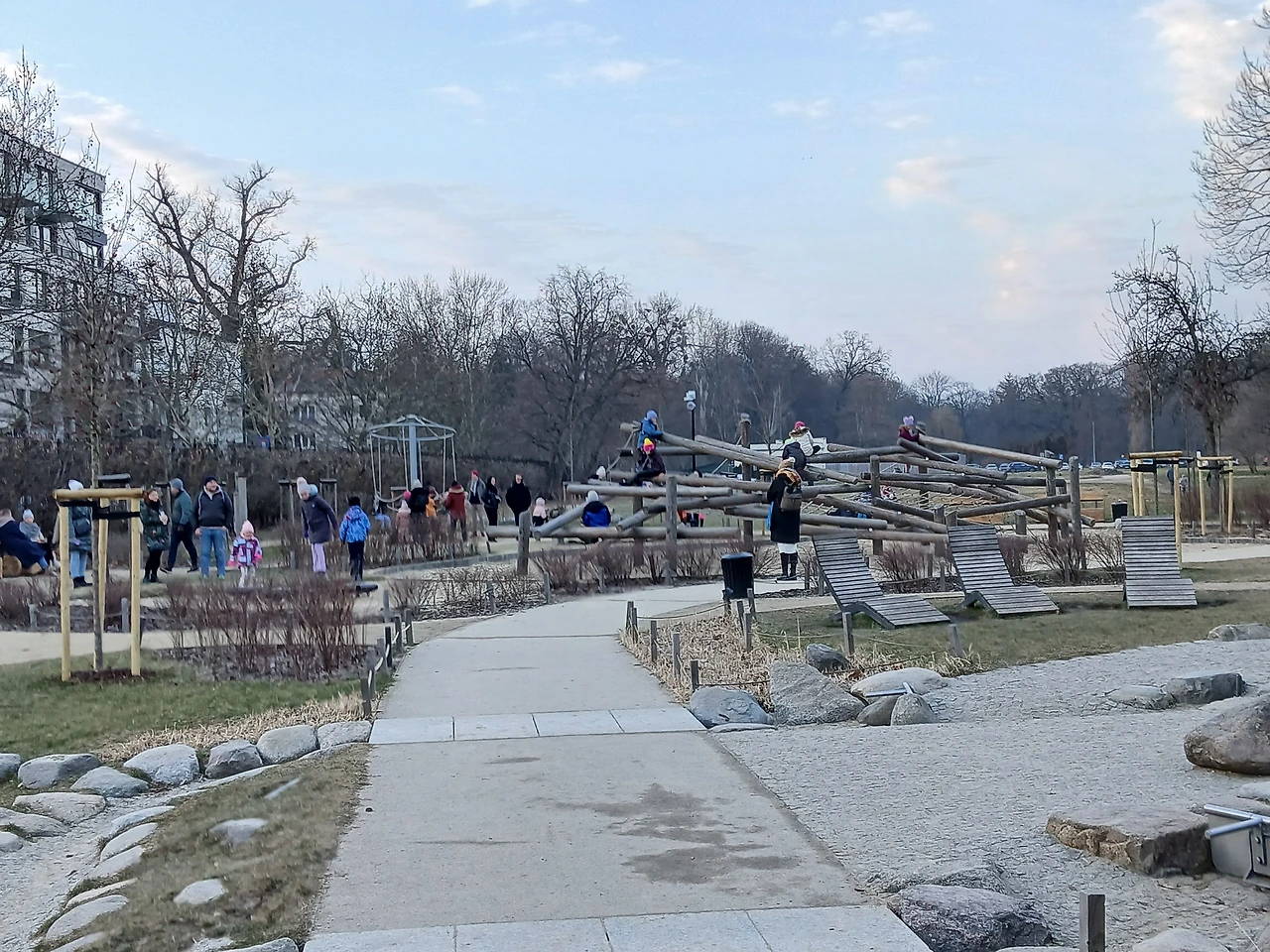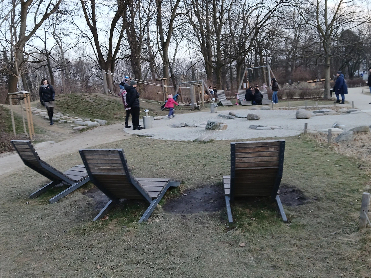 그러다가 어찌어찌 남쪽으로 생각 없이 이동하니, 어느새 나도 모르게 와지엔키 공원에서 벗어나 있었다. 와지엔키 공원을 벗어난다 해도 무조건 공원이 아닌 곳으로 가는 건 아니라 다른 공원들과 붙어있는 구간도 있는데, 내가 딱 그 방향으로 가고 있었다. 보니까 내가 간 곳은 어린아이들을 위한 놀거리들이 많은 놀이터였다. 주말이라 그런지 상당히 많은 아이들이 뛰어놀고 있는 것이 보였다.