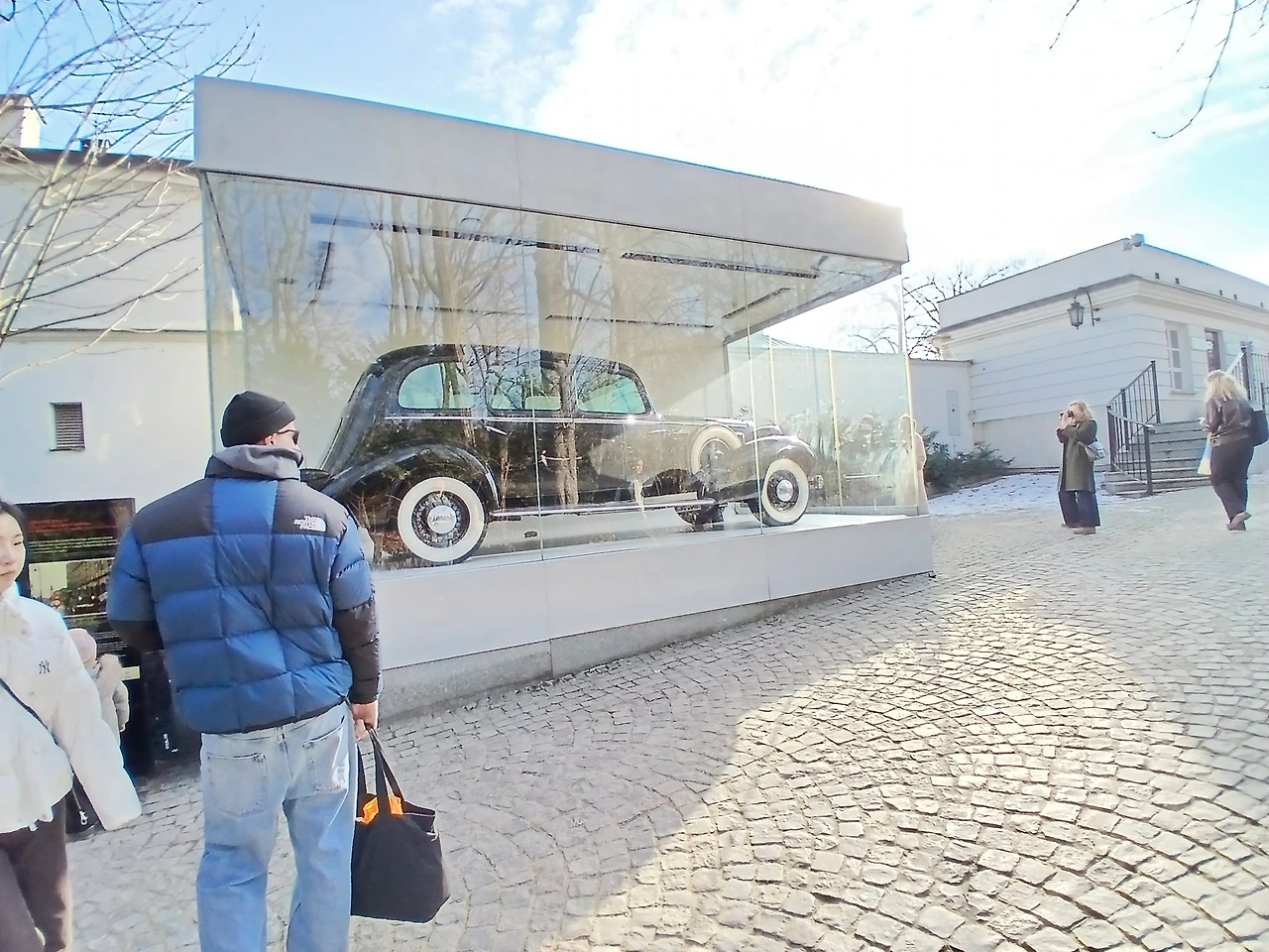 그렇게 벨베데르 궁전까지 관람을 마치고 나니, 어느 순간 한 바퀴를 가볍게 다 돌았다. 위 사진의 전시된 자동차가 있는 구간을 끝으로, 우리는 재학생 가이드들에게 찍은 사진들을 제시했다. 어차피 각 잡고 진지하게 찍을 마음도 없었어서, 가이드들도 사진을 보고는 적당히 통과시켜 주었다.