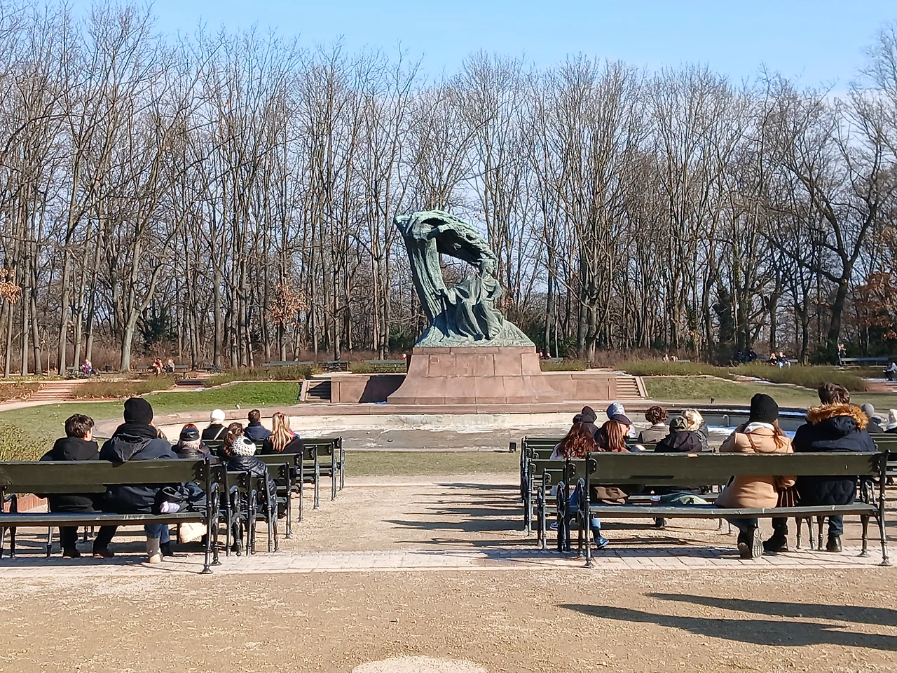 투리와 일행이 버스에서 내리고 공원에 들어갔을 때, 제일 처음 봤던 모습은 위 사진의 광경이었다. 동상을 한 번 가까이 살펴보면 느낄 수도 있겠지만, 저 동상은 우리가 아는 그 쇼팽의 동상이다. 아직 입구인데도 저만한 공간에 쇼팽 동상? 일단 느낌이 일반 공원의 그것과는 확실히 다르다. 공원 주변 울타리들도 이런저런 그림과 설명이 담긴 팻말들이 많이 붙여져 있다. 이것만 봐도 와지엔키 공원, 무언가 사연이 있는 것처럼 느껴지지 않는가?