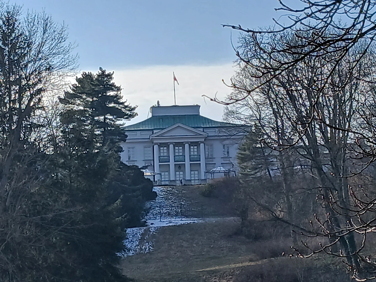 일행을 따라 쭉 가다 보니, 또 하나의 멋져 보이는 건물이 멀리서 눈에 띄었다. 꽤나 중요한 건물 같은 이미지였는데, 아니나 다를까. 확인해 보니 벨베데르 궁(Pałac Belwederski)이라고, 대통령 관저가 있는 곳이었다.