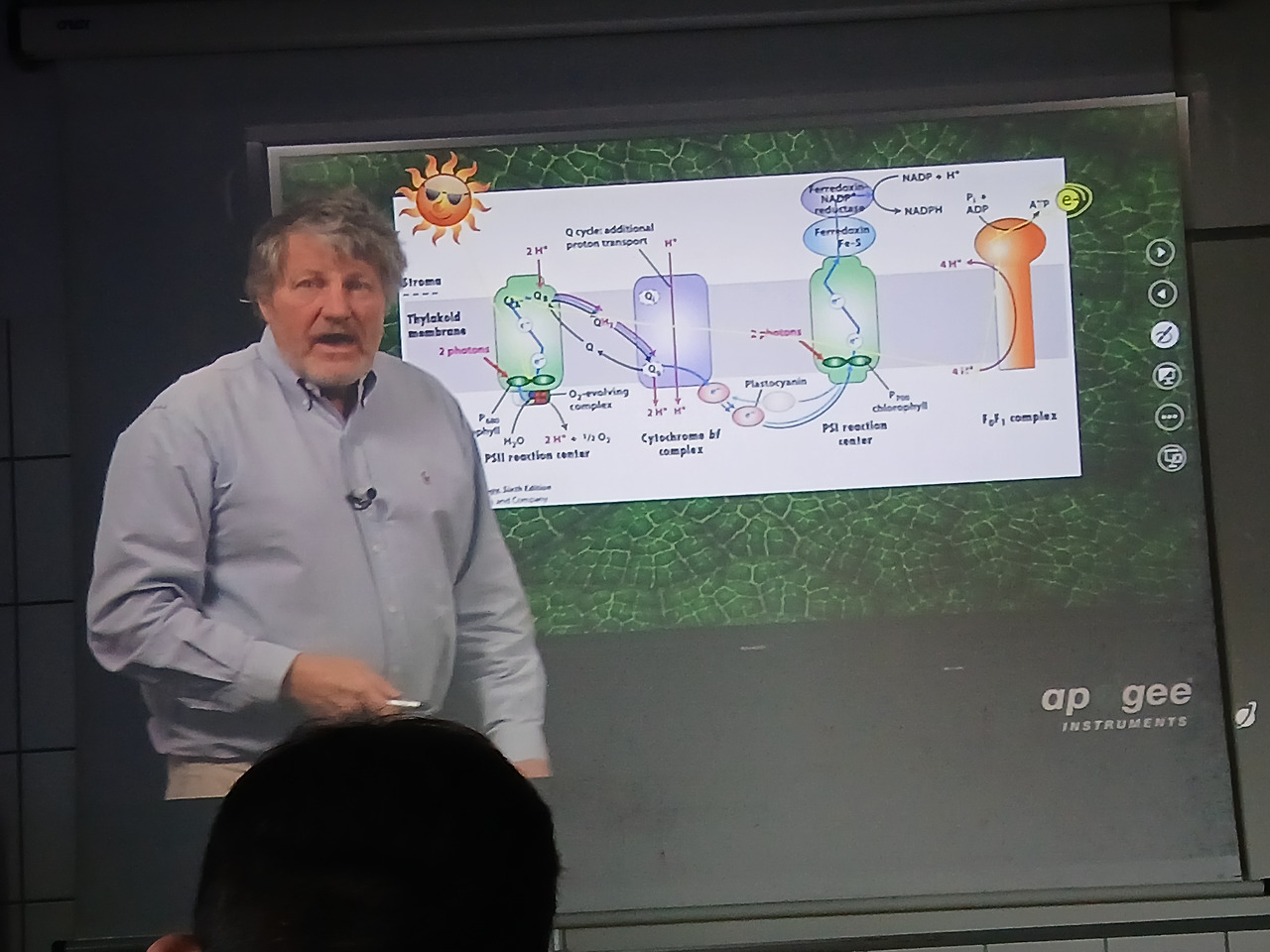 이 수업은 크게 3개의 순서대로 진행이 되는데, 외부 교수님의 강연, 강연 관련 기기 체험, 학생의 발표 순으로 전개된다. 담당 교수님이 직접 강의식 수업을 하는 경우는 많지 않고, 화상으로 외부 교수님과 연결이 되면 위 사진처럼 화상 수업을 하는 경우가 일반적이다. 수업을 하시는 교수님은 매주마다 바뀐다. 그렇게 한두 분 정도 수업을 하시면, 쉬는 시간을 약간 가지다가 강의실의 교수님이 여러 가지 기계들을 보여주시면서 체험식으로 강의를 하신다. 가끔씩은 밖으로 나가서 기기를 만지시기도 한다. 그러다가 한 명이라도 해당 날짜에 발표 일정이 있다면 그 학생의 발표를 듣는 것으로 수업이 끝난다.