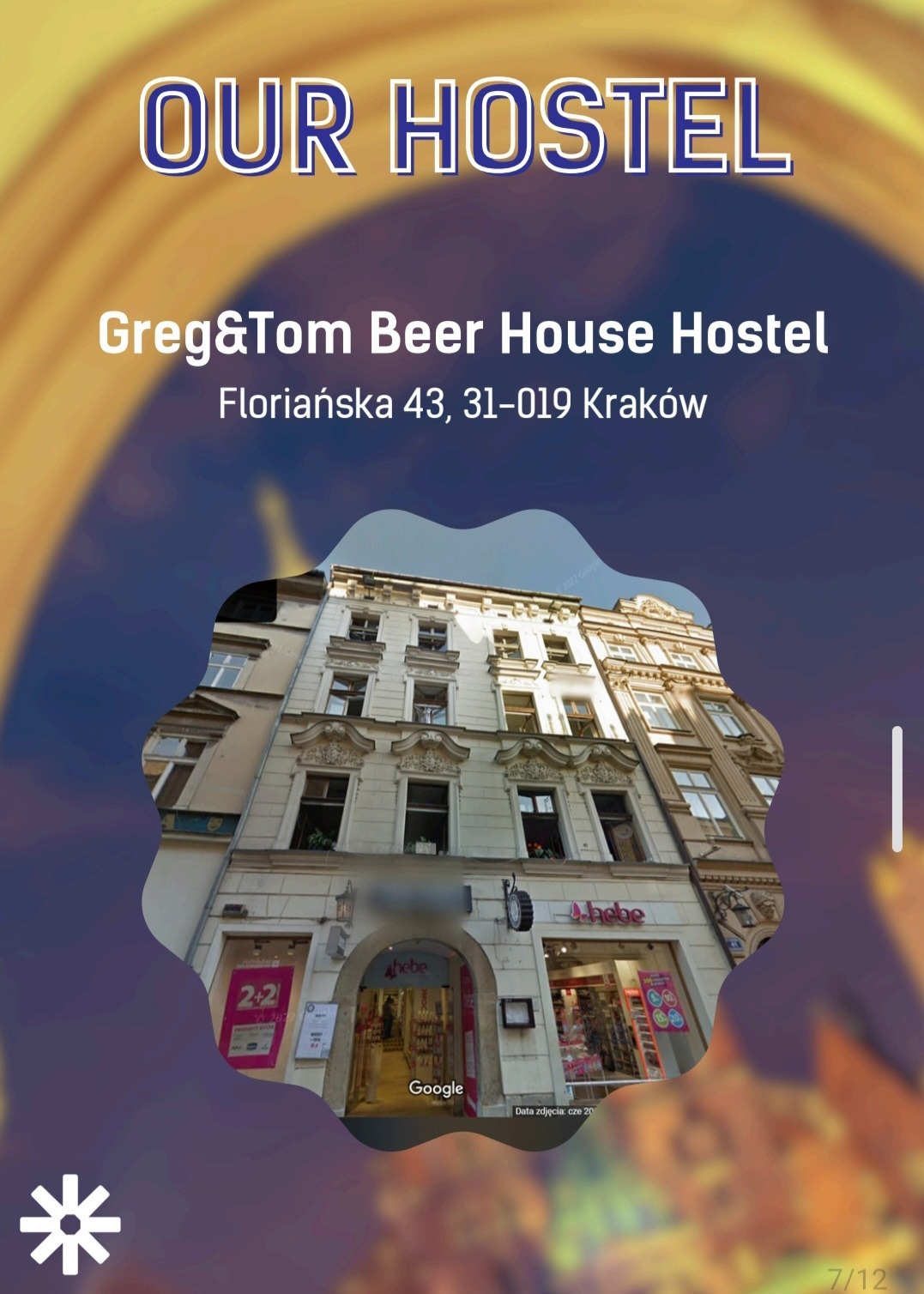 ESN은 단체로 여행을 가면 여행 일정과 숙박지에 대한 정보를 미리 업로드하는데, 그중 호스텔에 관한 부분이 위의 사진이다. 투리가 나중에 크라쿠프에 다시 올 때도 예약한 숙박지가 'Greg&Tom'으로 시작하는 호스텔이었는데, 뭔가 유명한 저가 호스텔 브랜드인가 보다. 아무튼 위의 주소가 있으니 길을 잃어도 구글맵으로 쉽게 일행이 있는 곳으로 돌아갈 수 있다는 말씀!